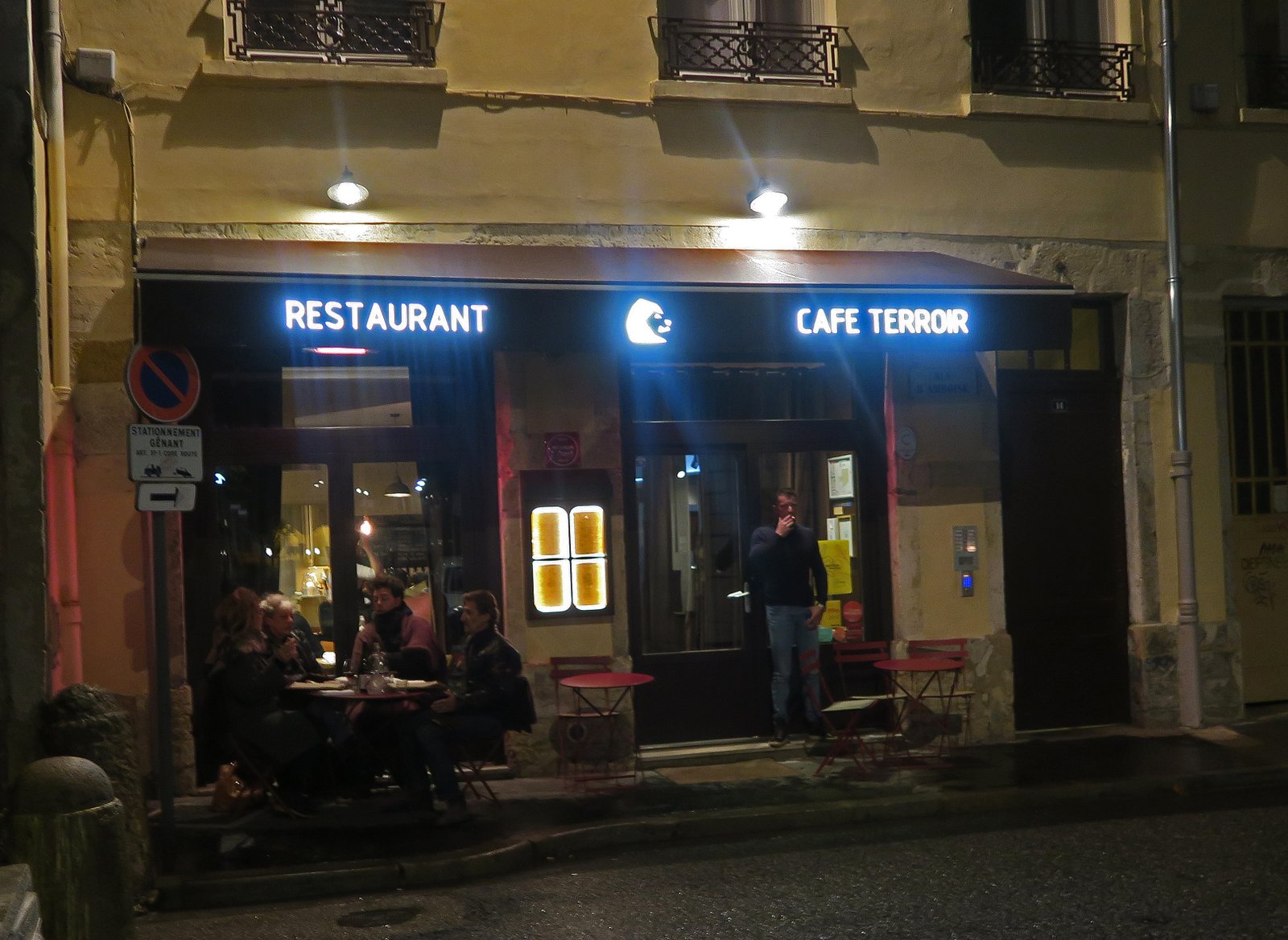 I had a place in mind for dinner; but wasn't able to get reservations. But, I had another strategy; the restaurant I had in mind, Café Terrior started service at 7pm. Café Terrior also had a wine bar a few meters up the street, which opened at 6pm….and I'd read somewhere that the really nice bartenders at La Cave Café Terroir would sometimes make reservations at the restaurant for you. So, we decided to test this out.