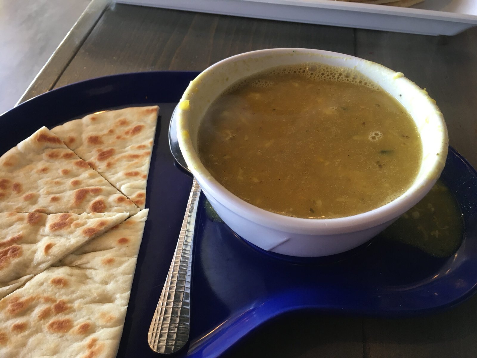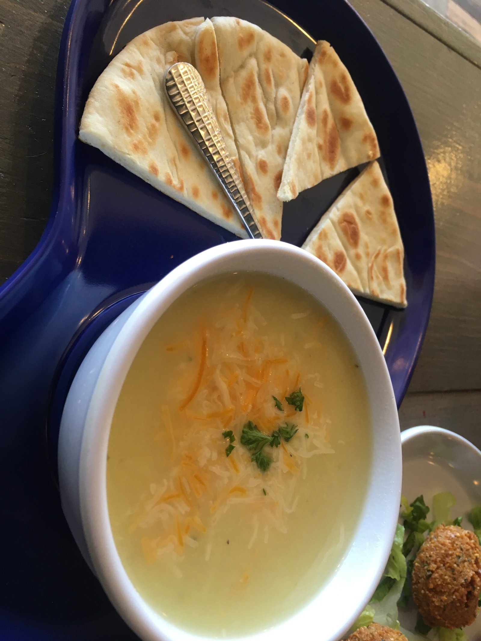 On another visit, I tried a cup of the lemon rice soup, which was even nicer, with the fresh lemon 'zip'. Each bowl included a fresh, warm pita half, which went well with each soup.