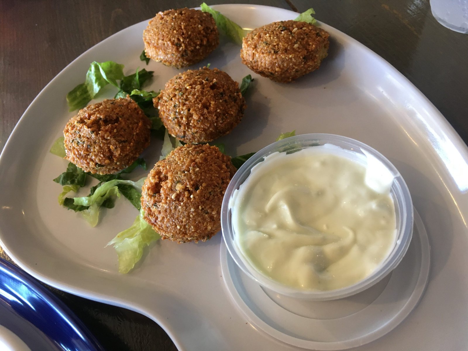 A side order of falafel with tzatziki ($3.99) was also an automatic order for me, and another great choice. Lightly crisp exterior and fluffy, herby interior of mashed garbanzos along with the house made yogurt-cucumber dip, was just a perfect addition to one of the meals.