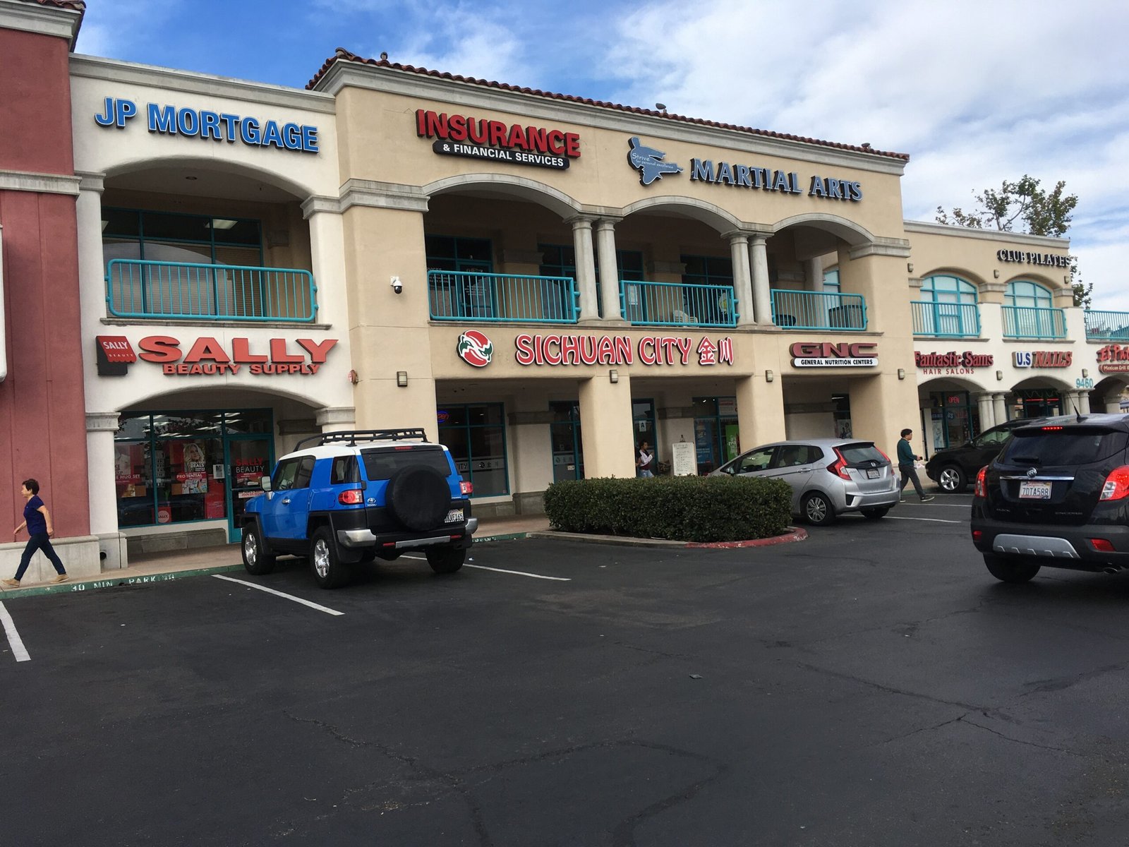 In the first San Diego H-Mart location, the north end of the parking lot has been home to three restaurants; one has changed names a few times recently. It had been Golden State Seafood (where Faye used to go with family) for more than 20 years and then in early 2018 the owners sold and it changed to Spicy Hut, which abruptly changed the name in May of 2018 to Sichuan City (it's the same owner).