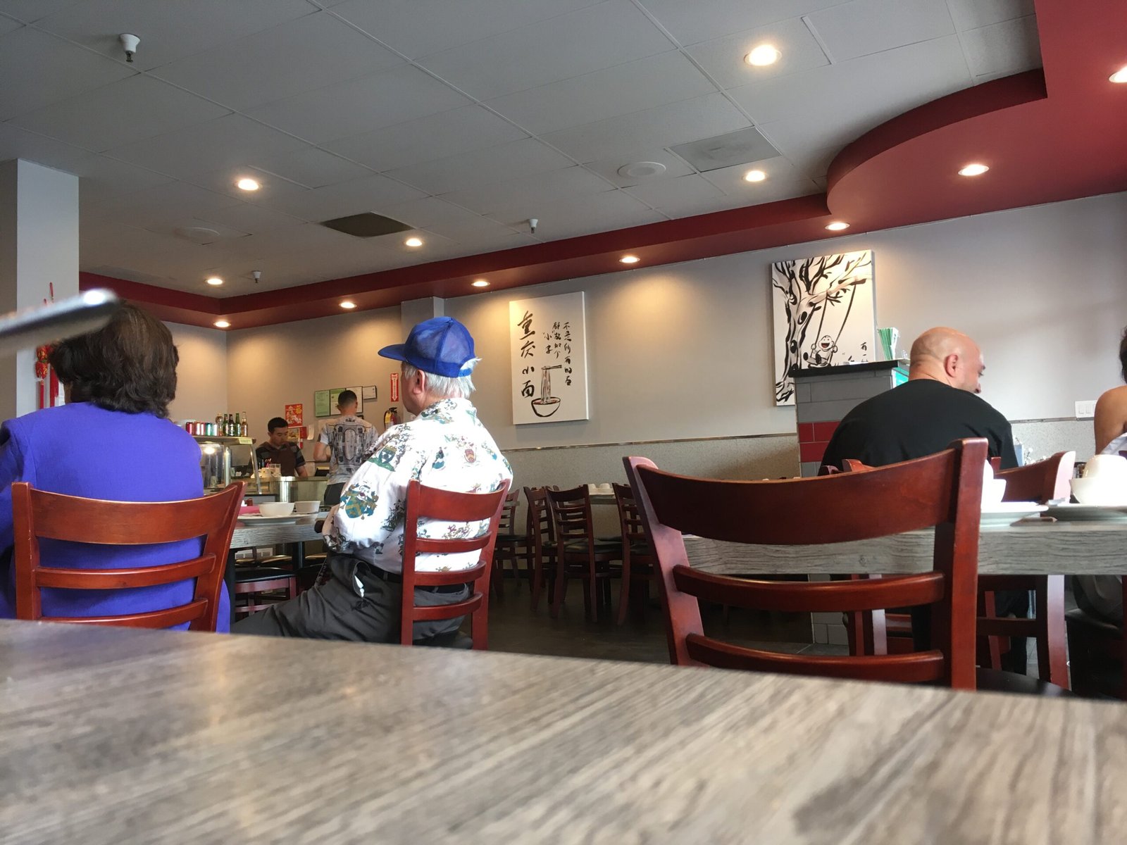 Shredded pork with pickled vegetable ($10.99) was not quite what we expected, but it was good. (I had expected pickled vegetables like those on top of the noodle soup, above). The pork, by itself…I could taste the flavors, including ginger, and it was a good stir fry of pork. Those fresh chilis…good (and sweet/spicy) on their own, but when combined with a bite of pork, overwhelmed all other flavors. Not really a complaint (the menu did show two chilis indicating heat) but the fresh chilis were a surprise. We did take home leftovers and separated the chilis from the pork and the heat level was just right for a second meal.