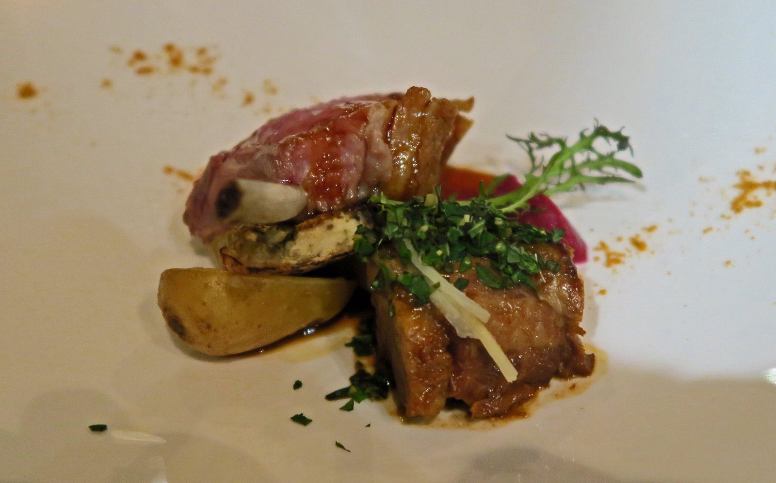 The confit lamb was so silken, rich, gamey, just plain delici-yoso. The roast was a bit too chewy, tough, and salty. Loved the slices of beets which added a nice mild sweetness, which the roasted lamb needed.