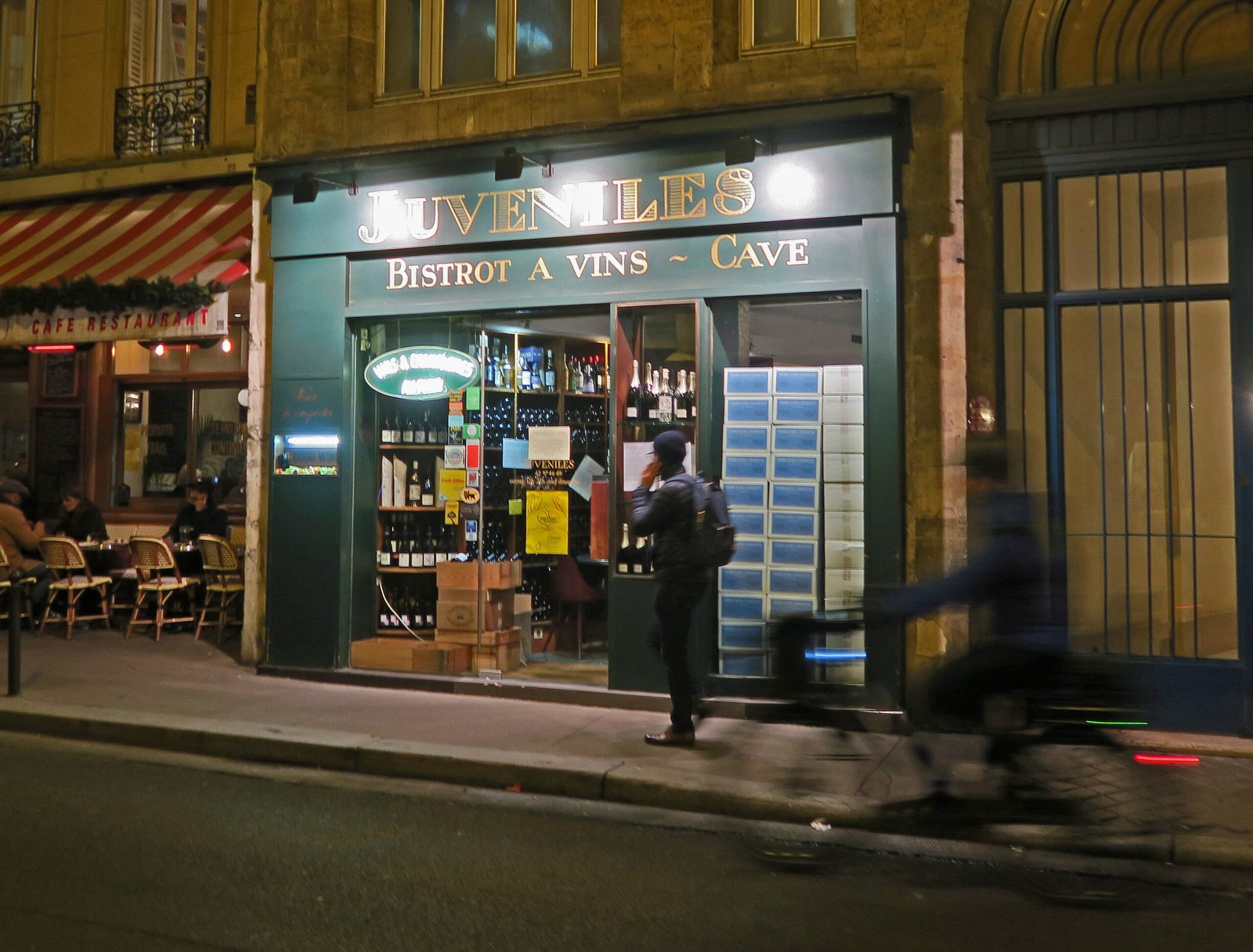 As this was our last night in Paris, I wanted to have dinner and made reservations for a place that was quite popular. But first we decided to get an aperitif. Right down the street was the well regarded Wine Bar and Bistro, Juveniles. The food is well regarded, but we just decided to drop by for a glass of wine before dinner.