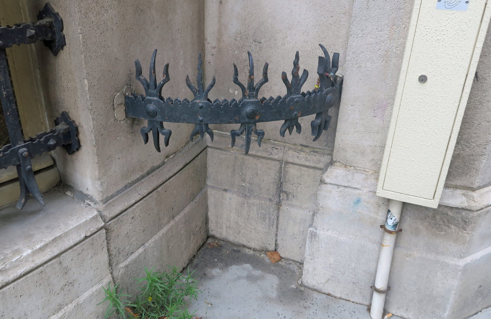 These are called "Empeche-pipi"…aka "pee preventer". The metal pieces would make urine splash back onto the offender…….