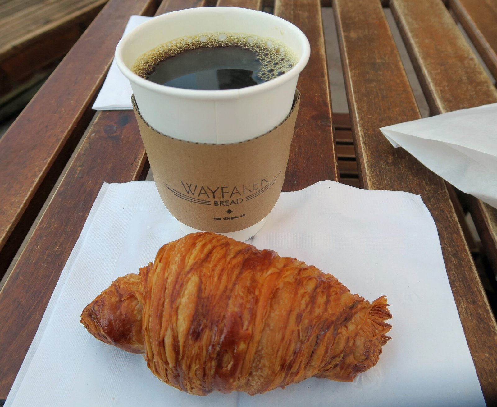 Like Wayfarer, I ordered an Americano, a croissant for me, and one to go which I dropped off for the Missus at work.
