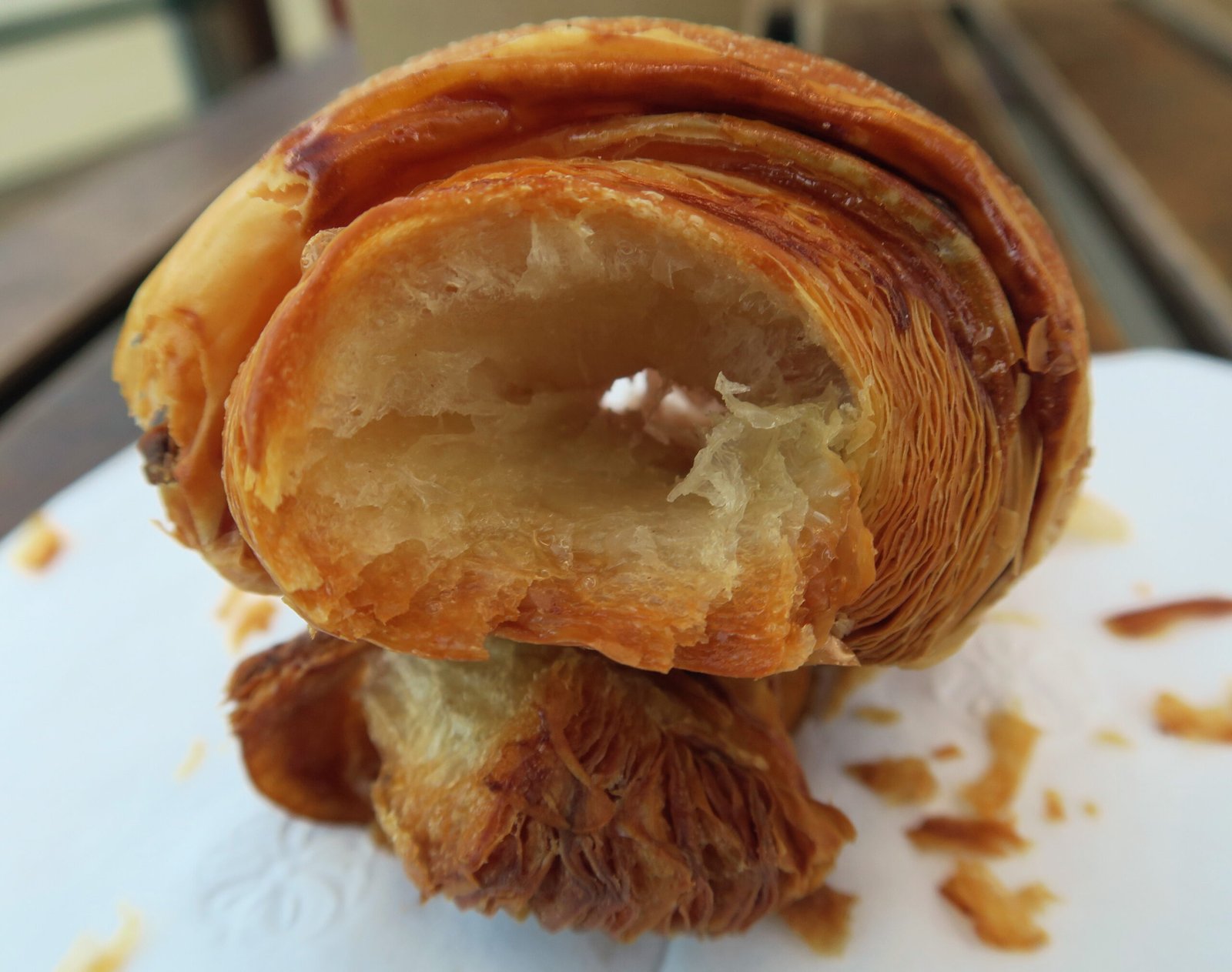This was way too dark and over-baked; it basically exploded when I bit into it. That exterior is far past flaky. The layers are a bit too dry; though the interior is nice and light.