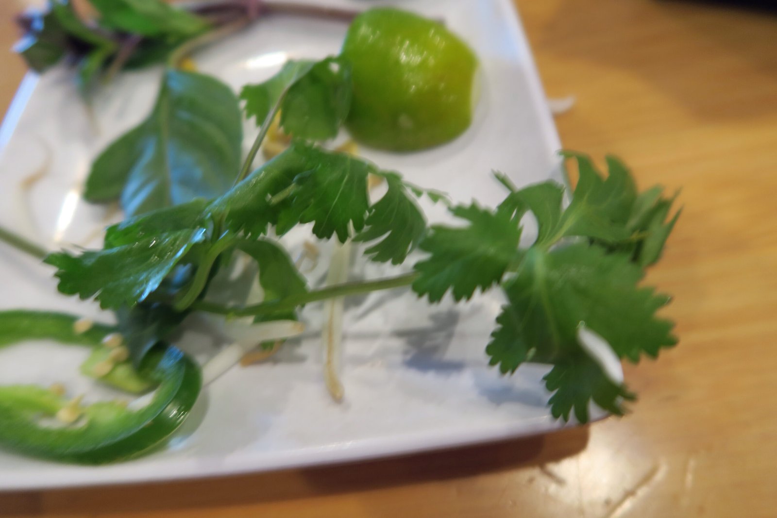 I was a bit surprised when my bowl arrived as it seemed kind of small…….and just having the clump of noodles on the bottom and two pieces of oxtail with little else made it seem somewhat sparse. There wasn't much bean sprouts provided, though the sprig of basil was quite large.
