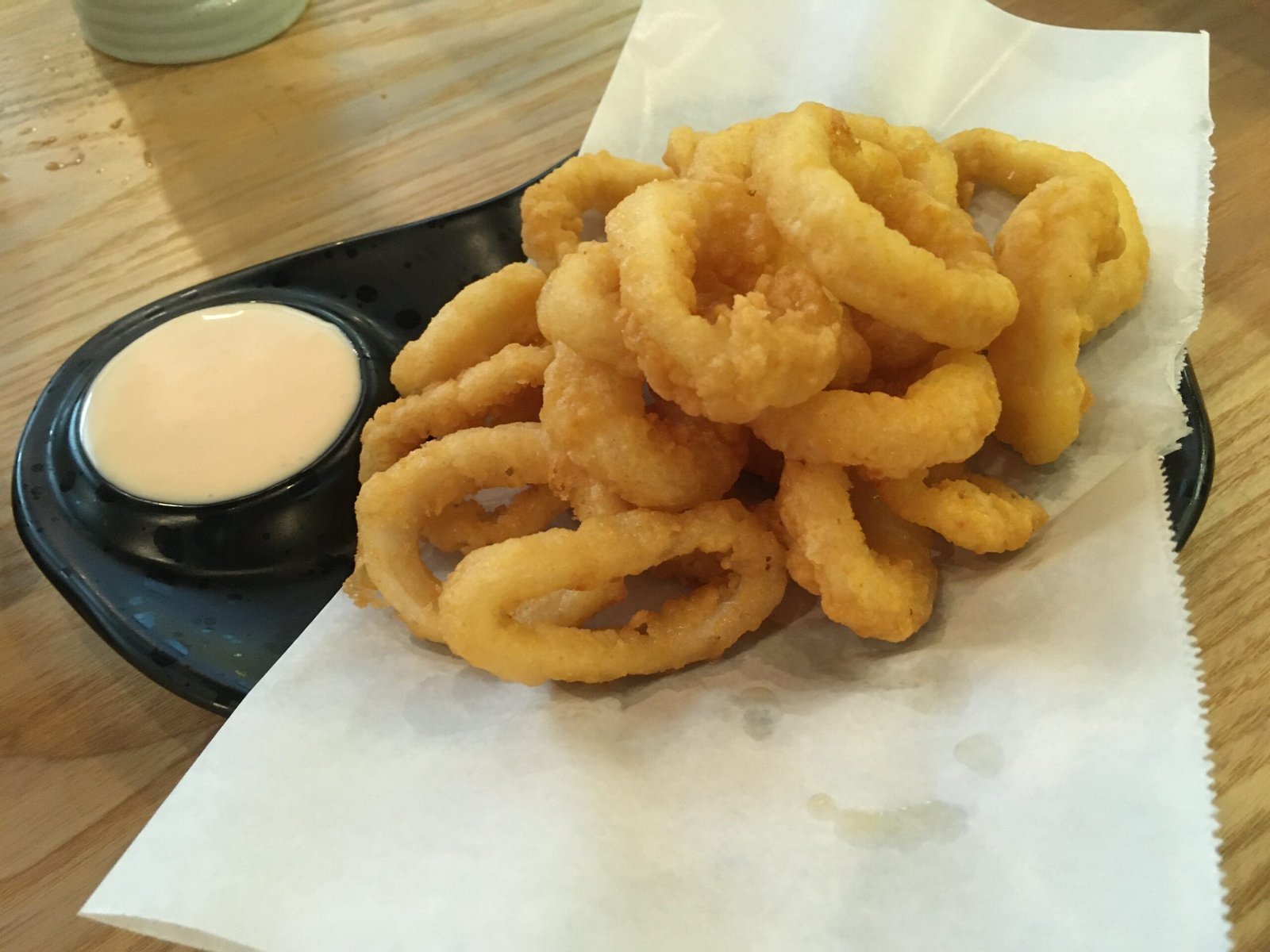 Then we set our eyes on the touch pad ordering system. Pretty simple to navigate; we did order one item at a time. First we decided to try the fried calamari rings ($7).
