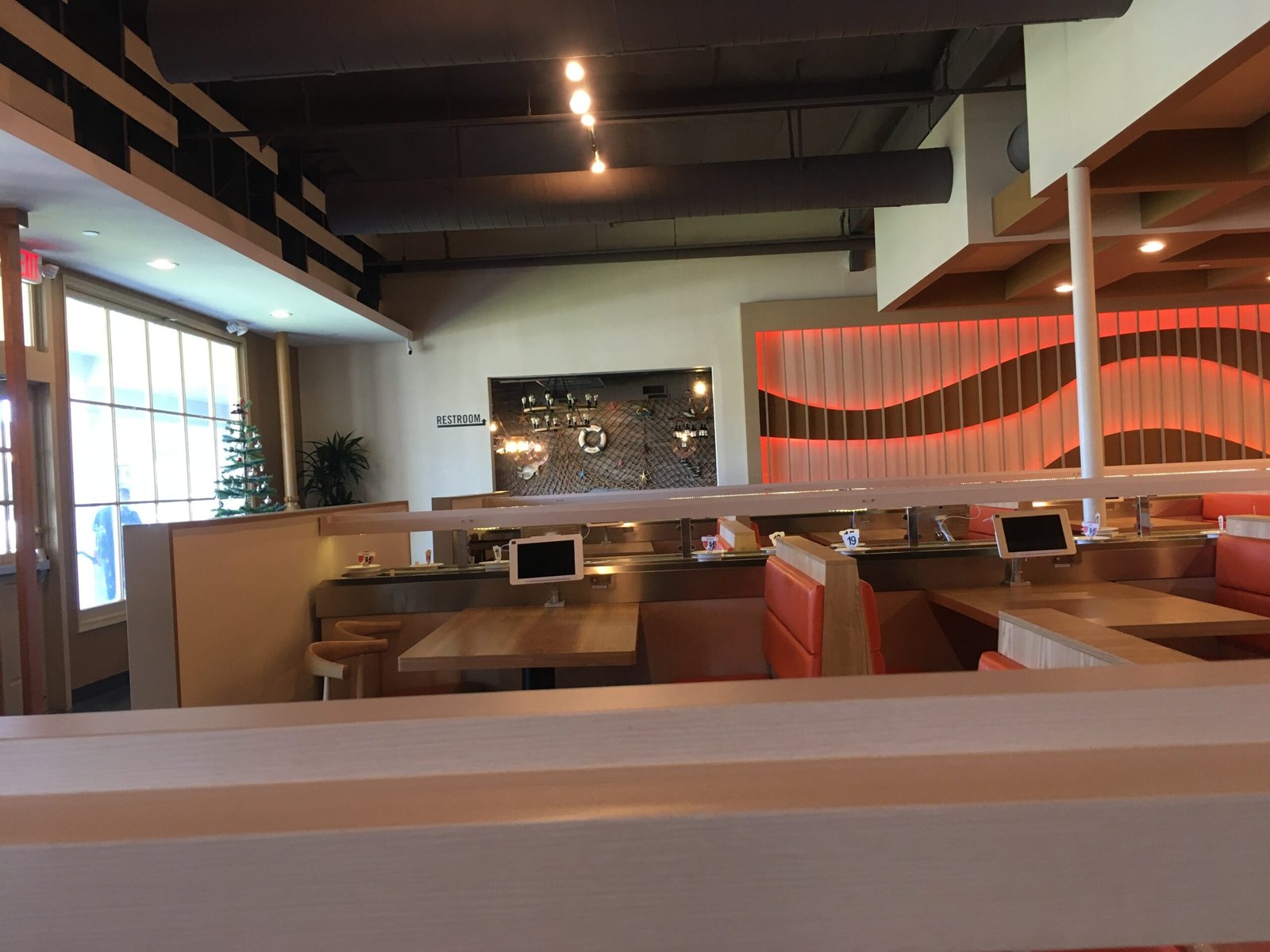 The Mister and I were here on a weekday (and Mikami is still in the 'Soft Opening' stage) and only one Conveyor was open. The second photo is looking into the Bar area, which has no conveyors, but where appetizers, entrees and 'buckets' can be ordered.