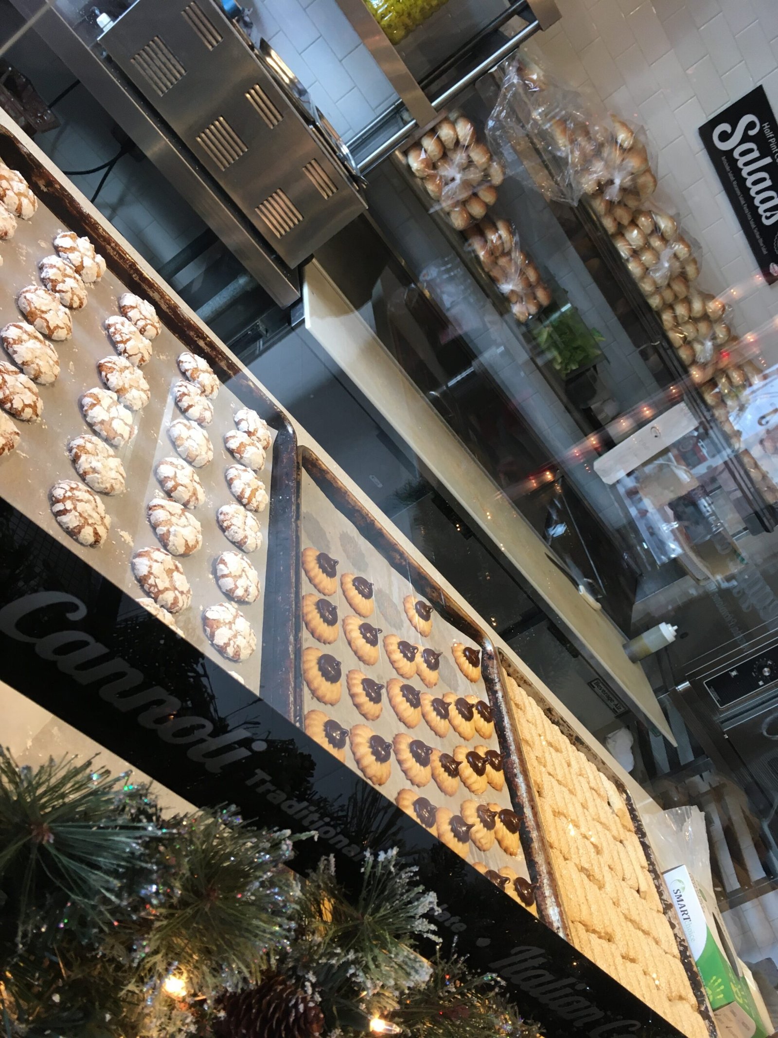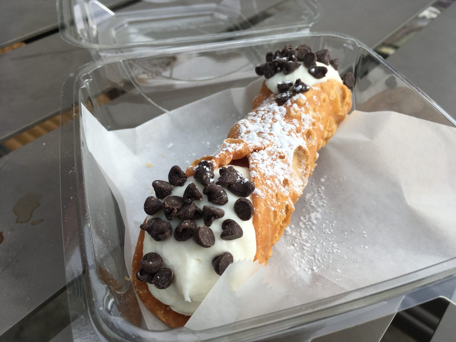 There is one item not even listed on the menu, but everyone orders it. The cannoli shells ( a delicious fried pasty) are near where you place your order at the counter and are filled when you order. The filling is a smooth ricotta with citrus (lemon) and the ends are topped with tiny chocolate chips (optional; as if I'd say no). The cost was around $3.