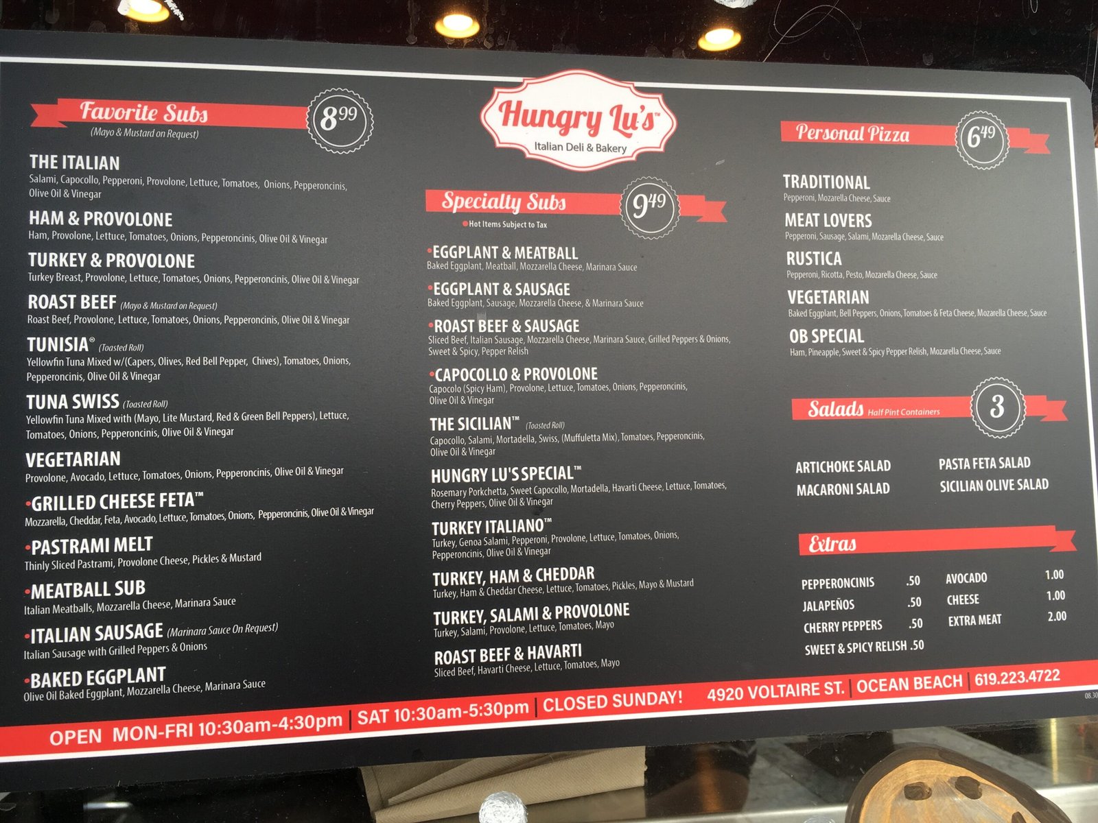Hungry Lu's is located in the midst of homes and a few businesses on Voltaire Street, three blocks East of the Pacific Ocean. The Ocean Beach community has been able to enjoy this Bakery and Deli since 1973.