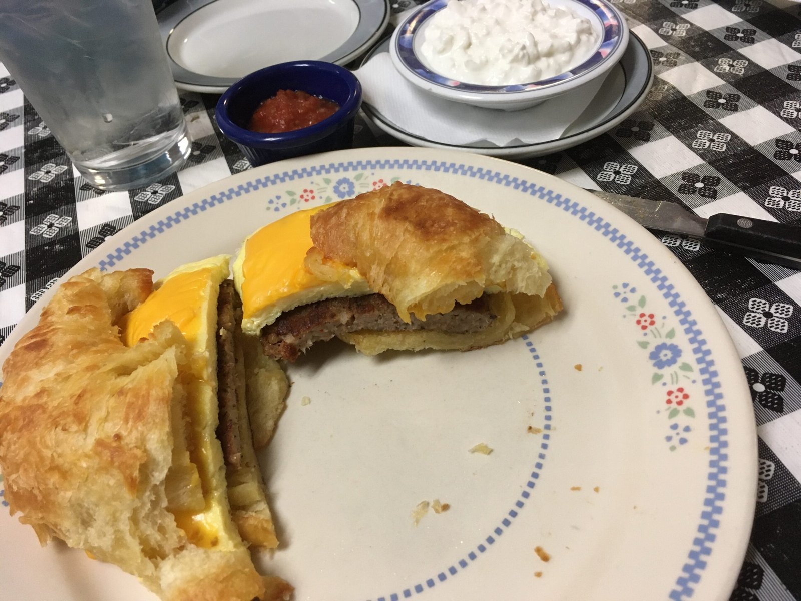 The Breakfast sausage croissant with a side of cottage cheese ($10.95) is large, hearty and very tasty. There were leftovers to take home.