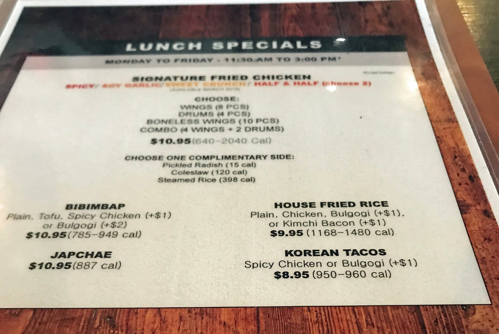 And while the parking lot was a total mess…..folks often take up two parking stalls here; Bonchon itself was quite empty at 1130am; on a Wednesday.