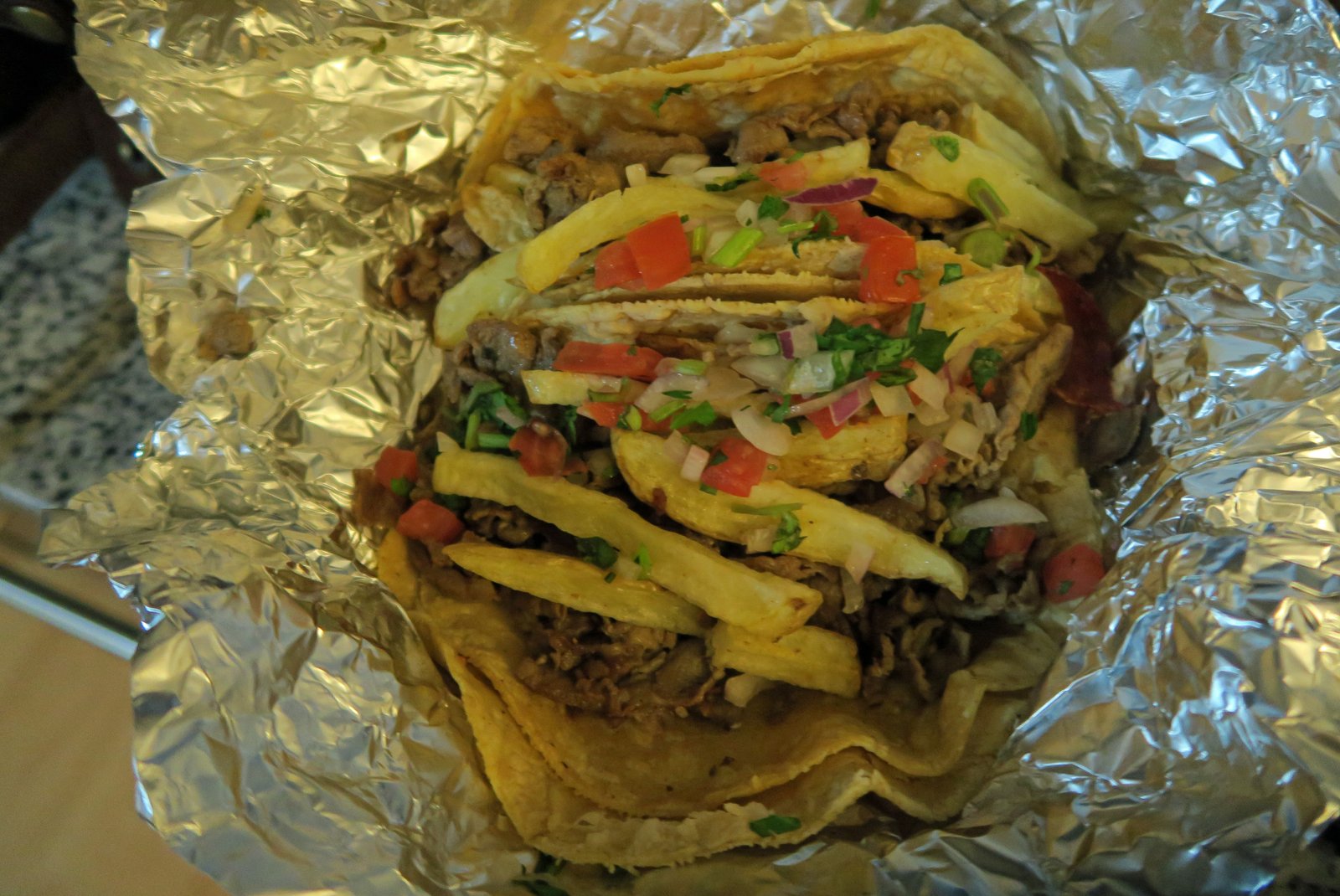 As we were walking back after dinner at Temporal, it started pouring again. We decided to quickly duck under the awning of one of the taco shops that lined the streets.