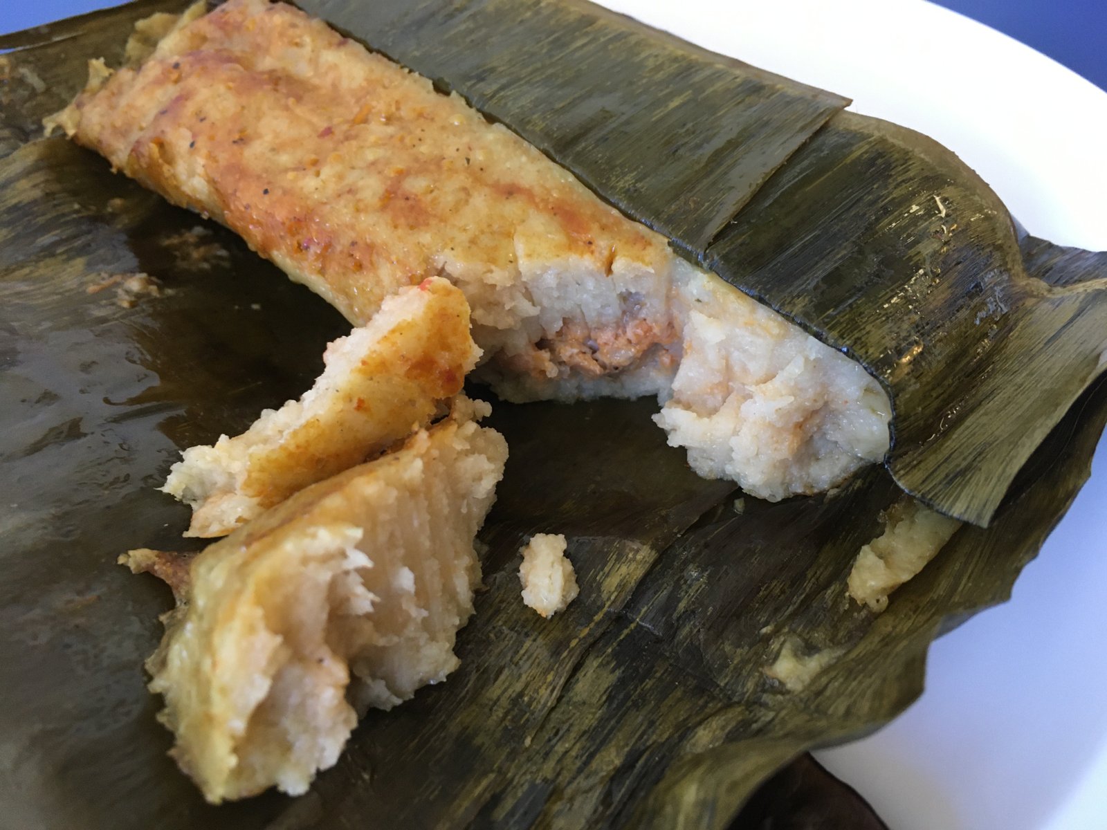 There are tamales on the menu; this one is pork ($2.50) and it was particularly good; the masa has lard in it. The banana leaf wrap seems to add a different dimension from the corn husk/traditional wrap. We plan to order some for the holidays later this year.