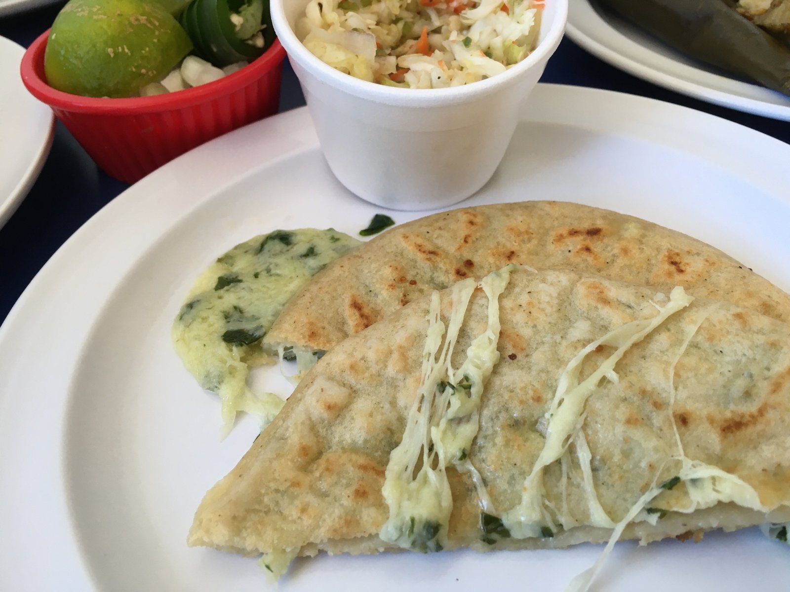 The spinach and cheese filled pupusa is wonderful.