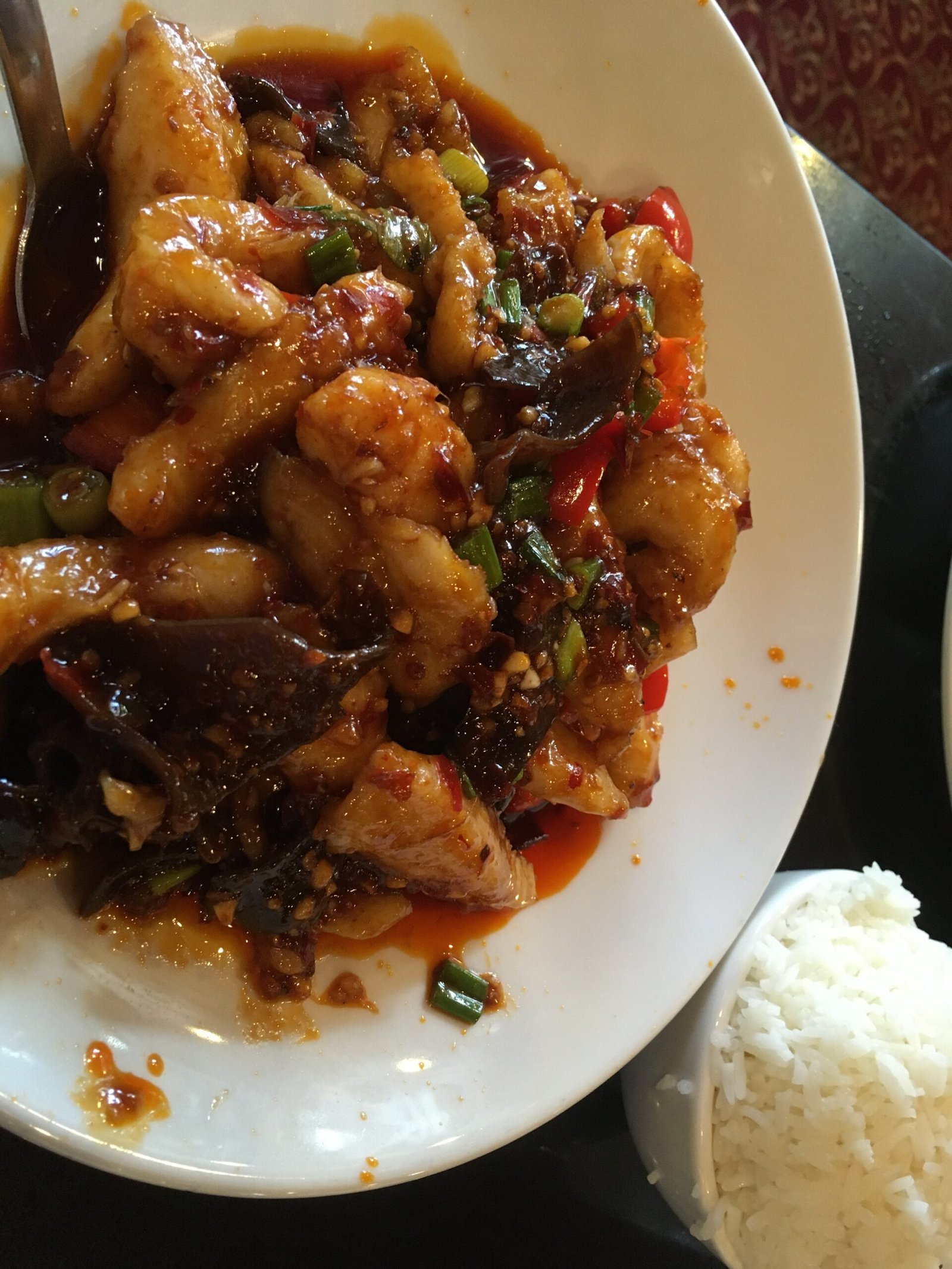 Szechuan Fish Filet ($10.99) offers a completely different spice and flavor point. Not quite 'numbing' but great flavored sauce which goes well with rice ($1). The bit of eggplant, fungus, onion and pepper which is stir fried with the (large quantity) of fish is nicely balanced.