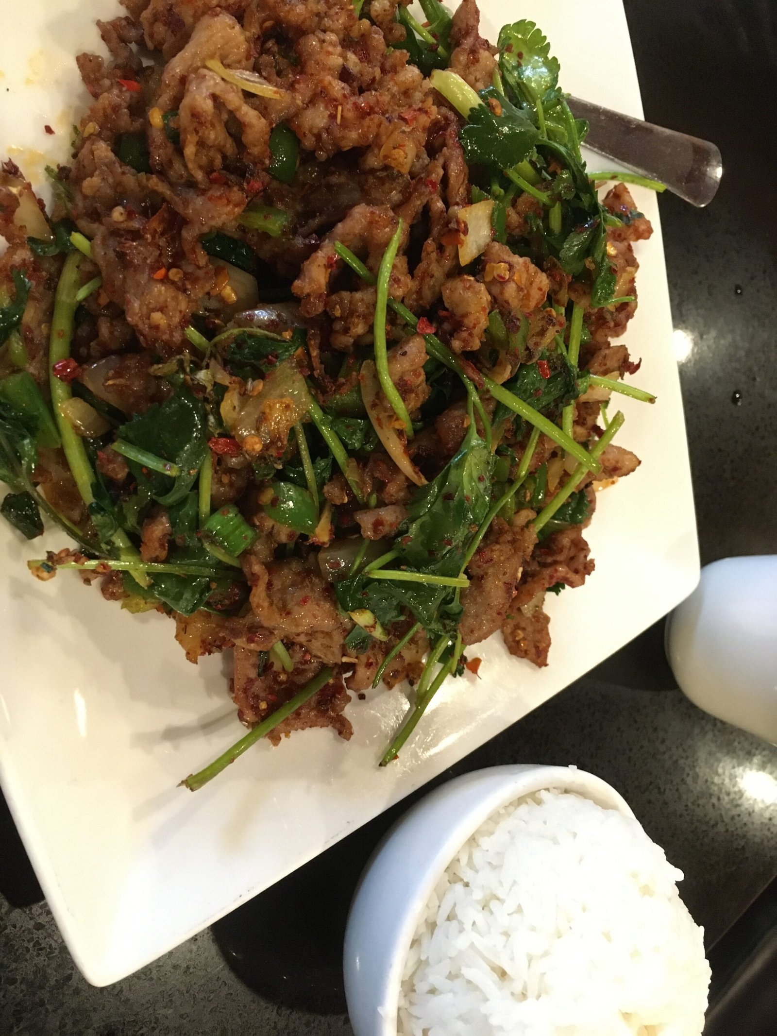 The cumin lamb ($13.99) is a new favorite. Just enough cumin which doesn't overwhelm the gaminess of the lamb and enough greenery to even out the heat.