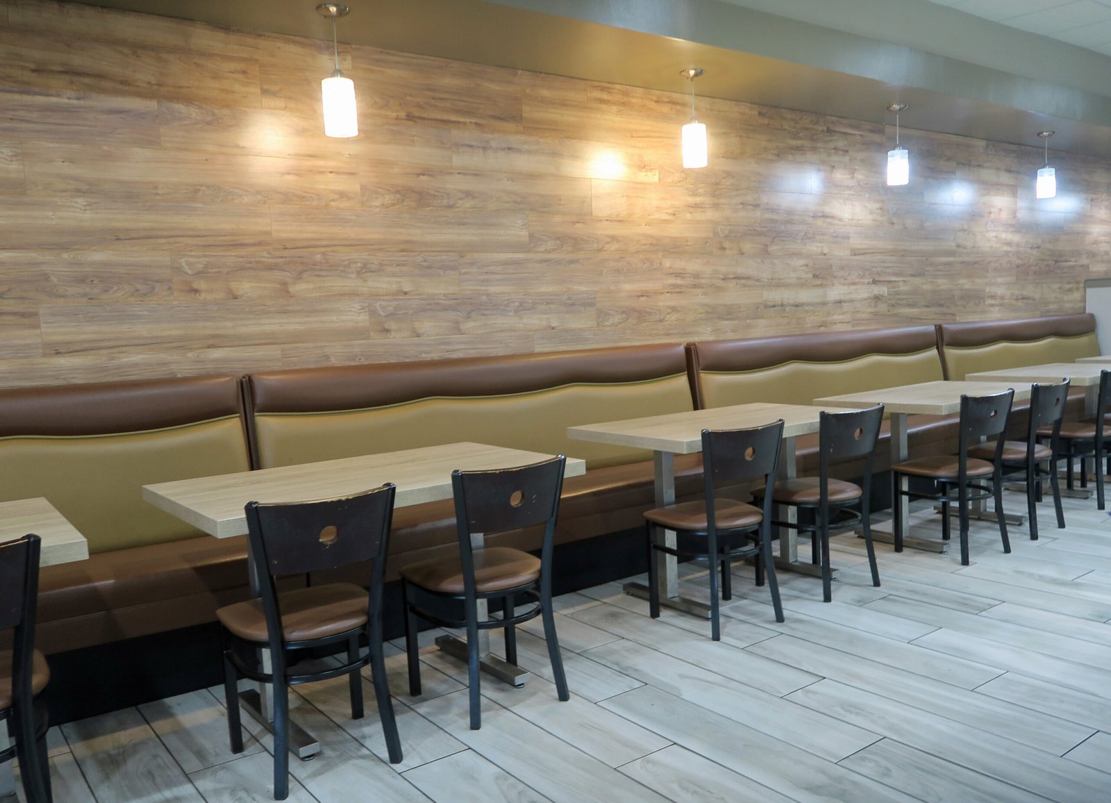 The restaurant is split into two sections; a dining area on one side…..