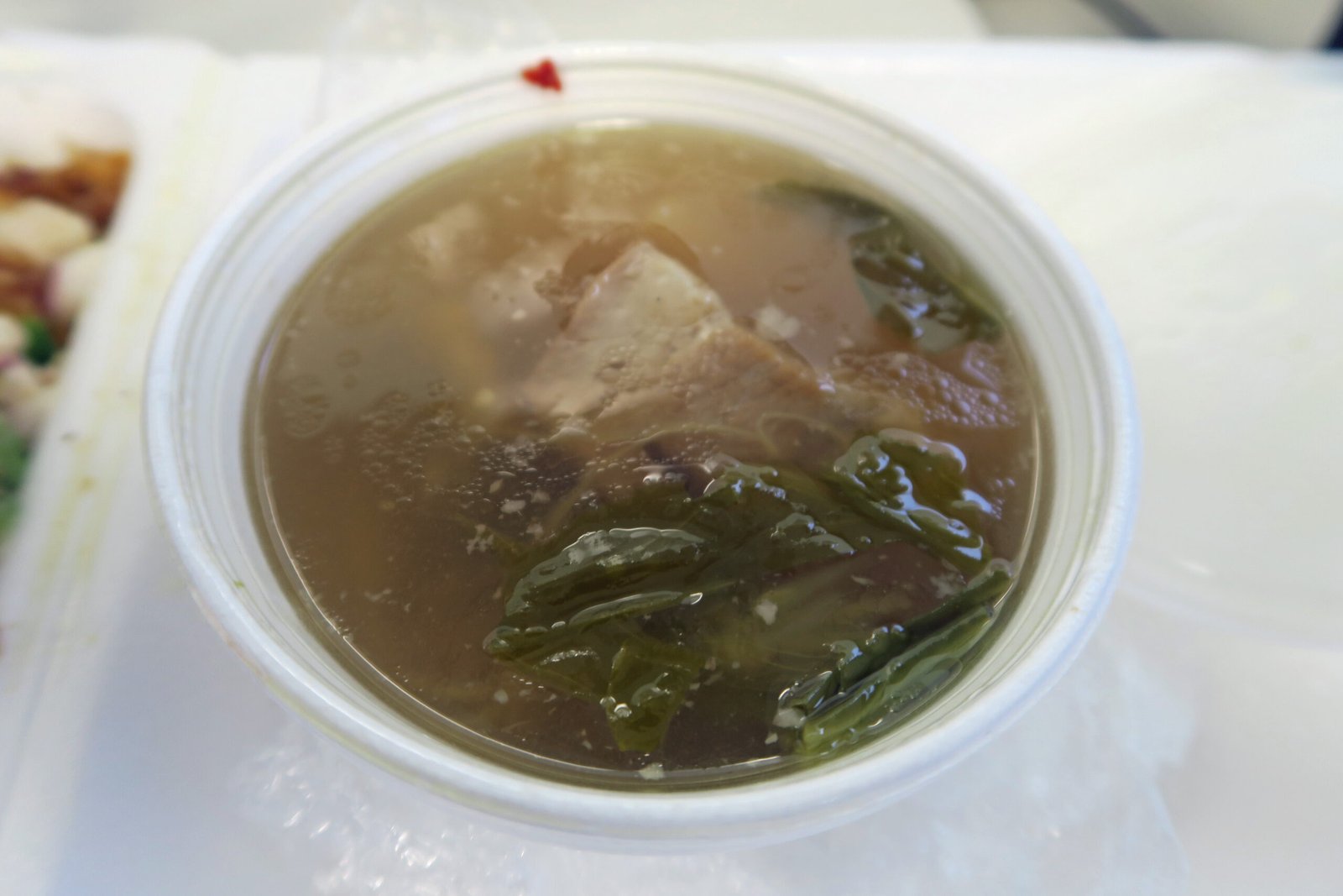 The one thing the woman did that I really liked was she made sure that I got some sinigang. Most places don't even bother if you either aren't Filipino or don't actually ask. The soup had a good amount of the wonderful sourness going on which I appreciated. There was a nice super soft piece of pork and a surprisingly spicy chili. I though the broth was a bit greasy; but heck, for free…..