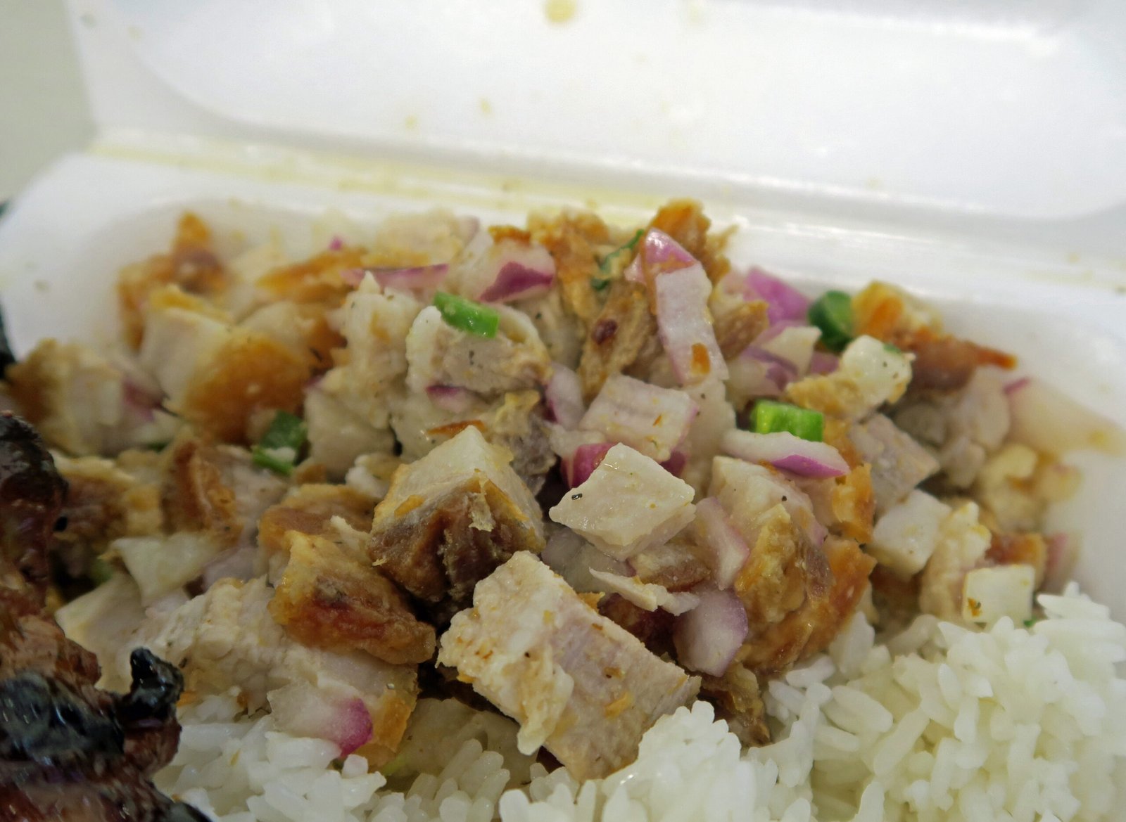 The woman working was all business and very efficient. I saw a couple folks getting pretty much the same thing; so I followed their lead and got the Pork Barbecue and the Sisig.