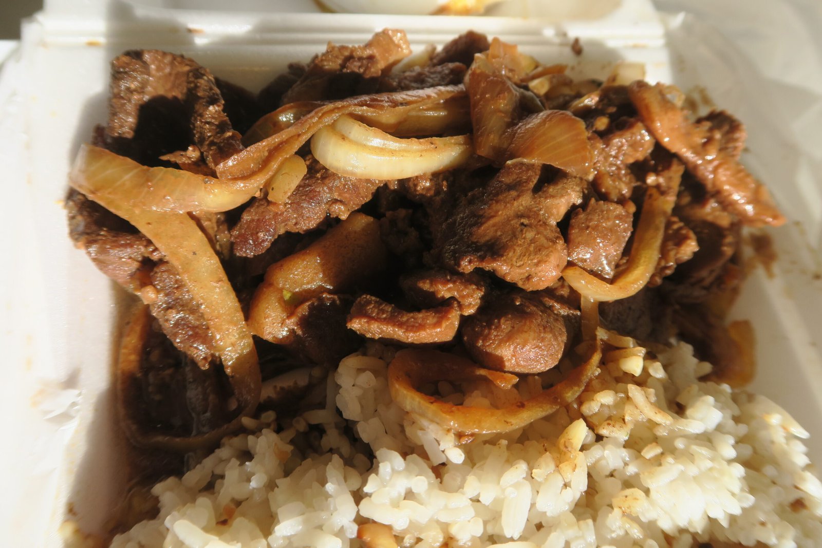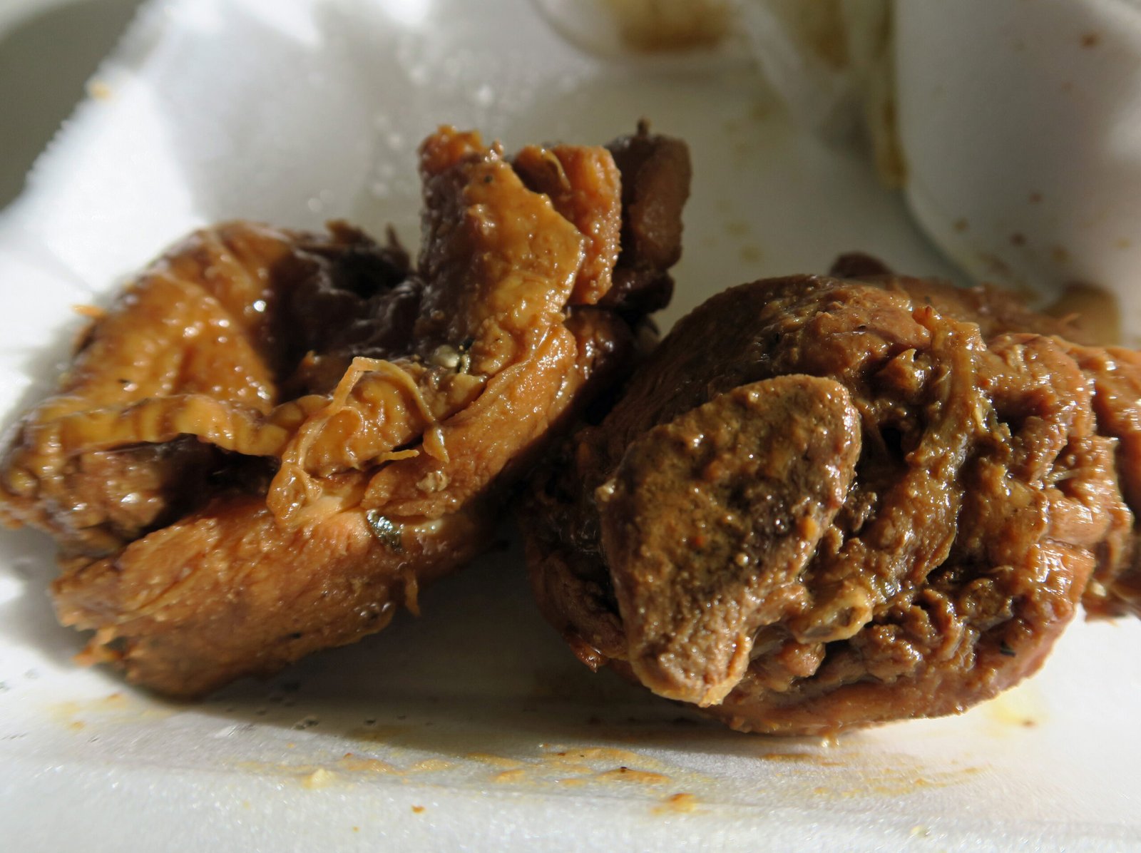 If anything, the bistek was even worse. I'm used to fairly chewy bistek, so that didn't bother me. It was the bloody-metallic taste and the sodium level that did. I'm used to a touch of sour-citrus in bistek, which was lacking here; or perhaps the salty-metallic flavors just cancelled it out.