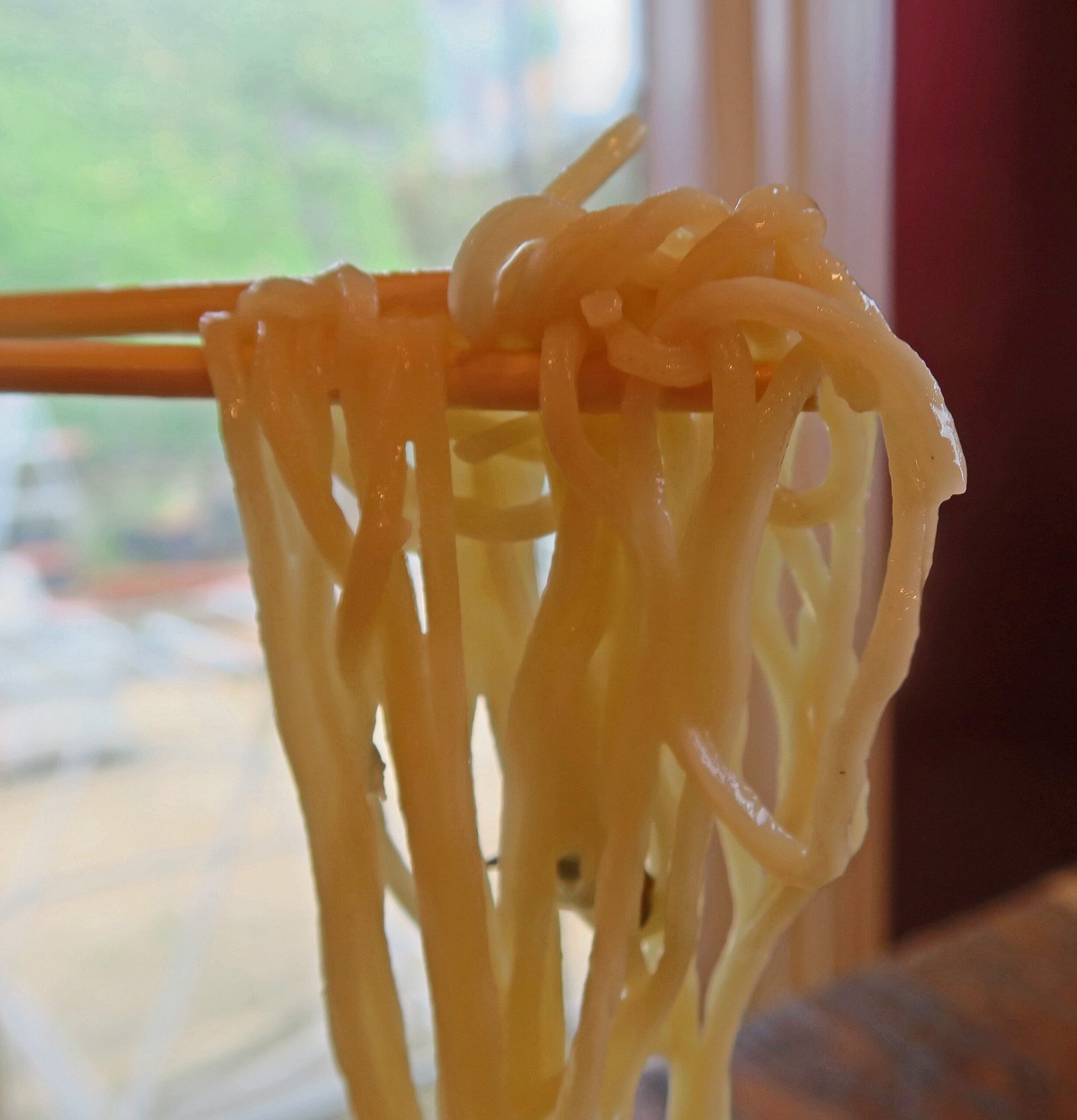 6 – Pour the other half of the water over the noodles, quickly shake and drain well, separate noodles. No wants the dreaded "clump"; especially with nice, chewy noodles.