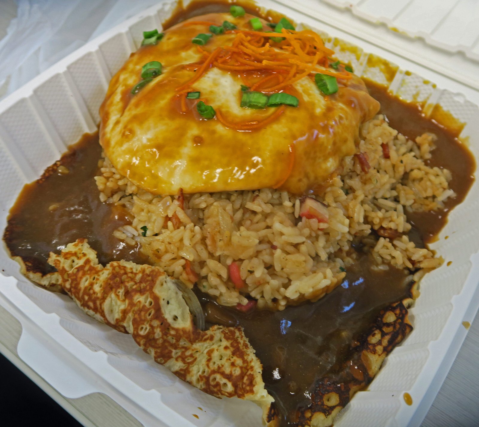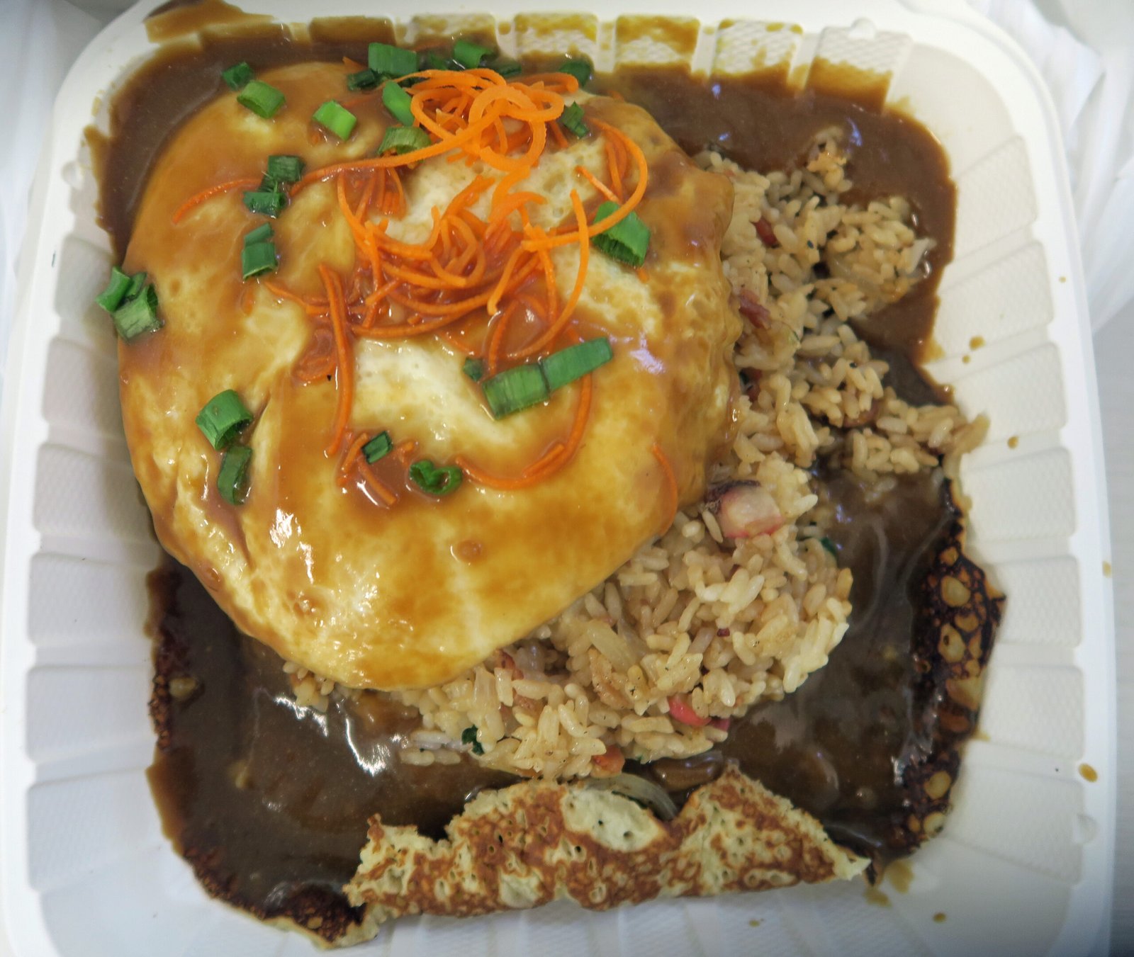 And while the crepe didn't travel real well…perhaps I should have ordered a regular loco……everything else was good; from the not massed produced, beefy hamburger patty, to the fried rice, to the egg that was still nice and runny.