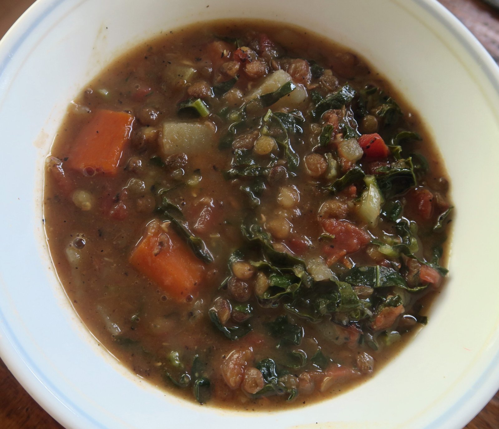 Made a Lentil and Kale Soup….made with…well, bacon fat of course.