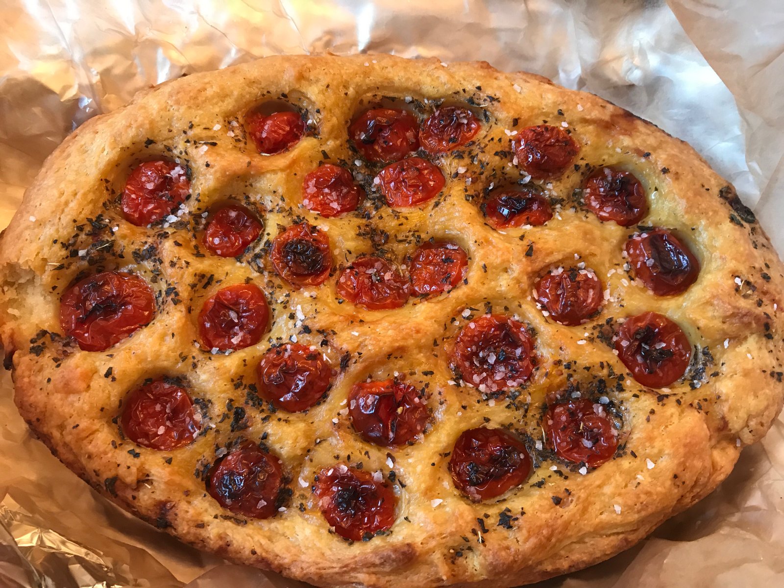 And we've been kind of trading food with our friends as well. Frankie's Auntie "Alle", like many folks I know have been obsessed with making a certain dish…..I've read about all the sourdough obsessions going on; Alle, well, she was determined to make the perfect focaccia. Not any focaccia mind you; but Foccacia Triggiano, from the region in Italy where her dad is from and currently resides. It got to the point where she actually ordered flour from Puglia!