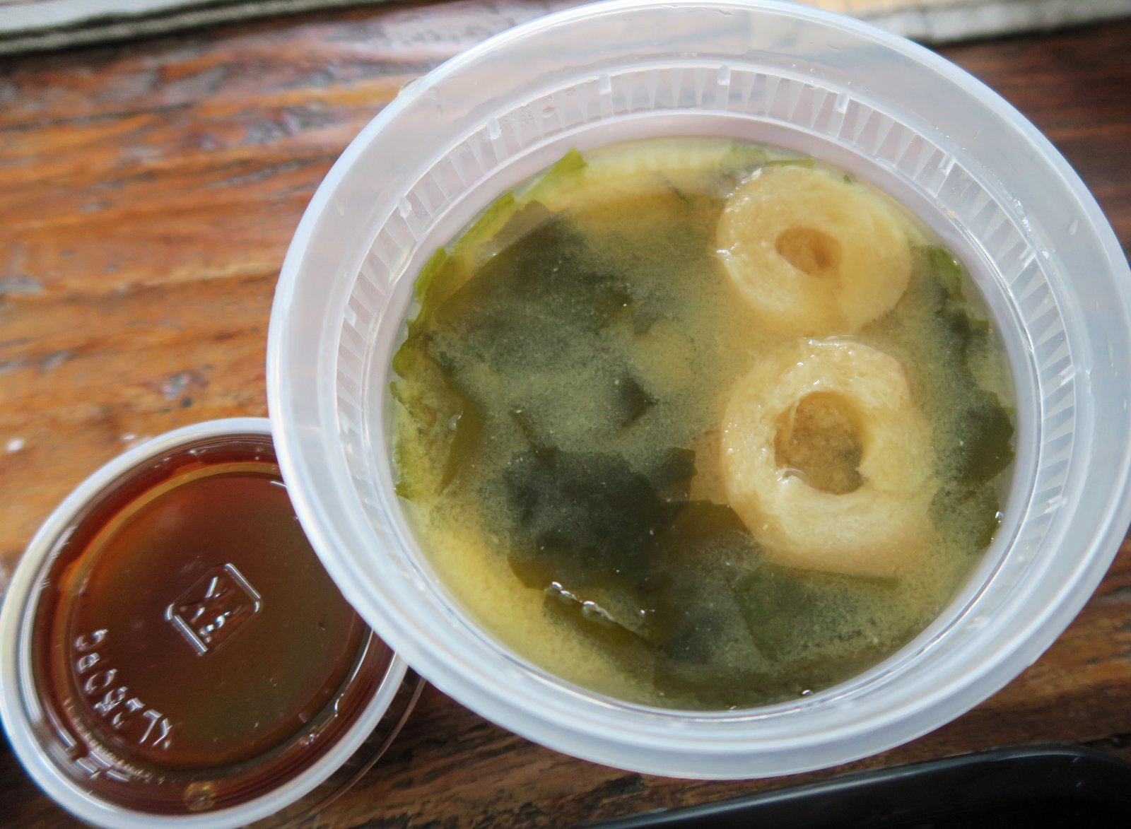 A couple of things I noticed as I went and tasted everything. The katsu sauce here is a bit more on the sweeter side; not cloying or anything, just a bit different from the typical Japanese Tonkatsu sauce, though definitely not a ketchupy as the katsu sauce in Hawaii. It was nice and thick and quite good. The miso soup is nothing to write home about and I really didn't expect much anyway.