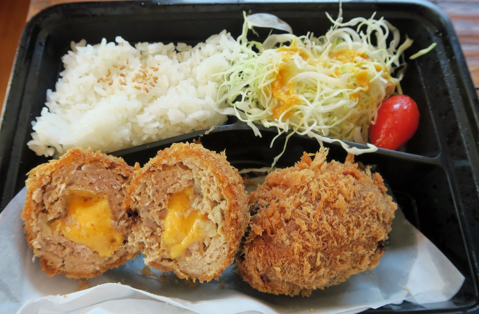 I didn't find this to be quite as good as the tonkatsu. While again nicely breaded, I thought the ground pork was rather bland and while moist, it was a bit too mushy in texture for me. I prefer my menchi katsu to have some heft and meatiness to it. The cheese would have been a good textural contrast if the meat wasn't so mushy.