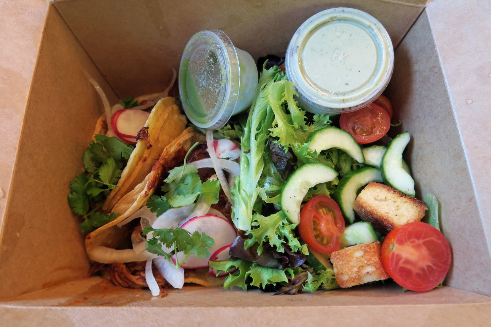 Things came packed nicely…..the photo is deceptive as the tacos were fairly hefty. I removed the tacos, which was more than enough for a light dinner.