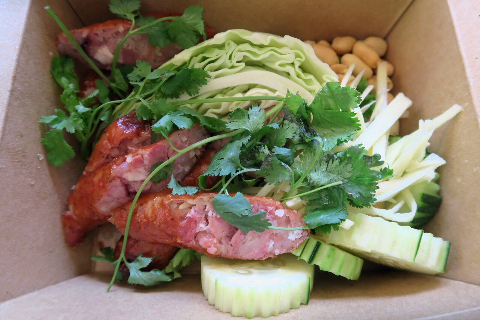I got the Issan Sausage, which was as expected, the duck larb was very nice once chilled, we got the regular papaya salad…heat level 5, which was spicier than we recalled…..must be getting soft in our old age. While we missed the layer of savory flavor the salted egg usually brings to the papaya salad, it was decent….not perfect, but ok.
