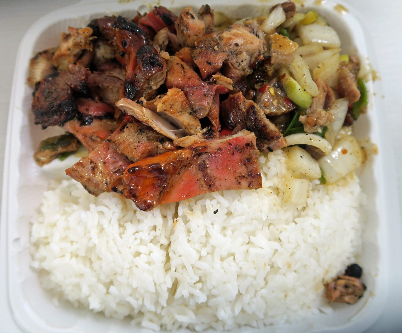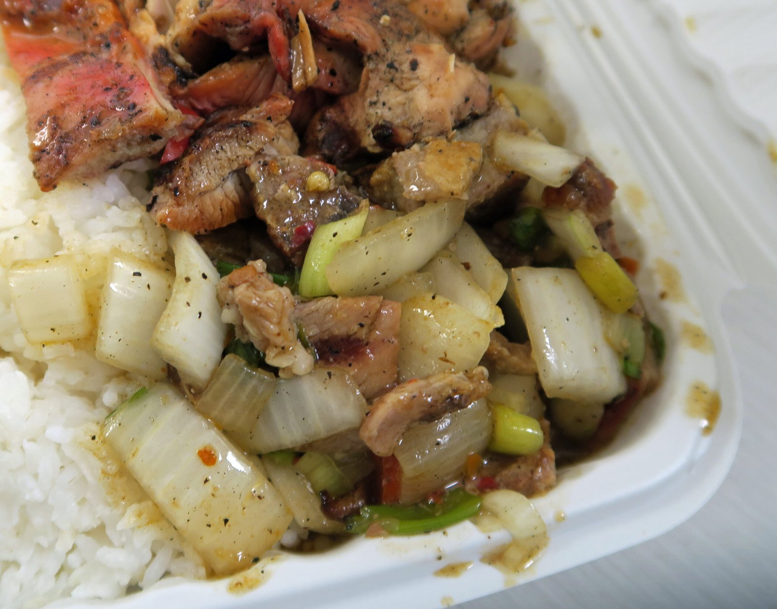 I decided to go with the BBQ Chicken and the "sisig-ish" Spicy Pork. Man, I'd forgotten what the portions are like at Nanay's.