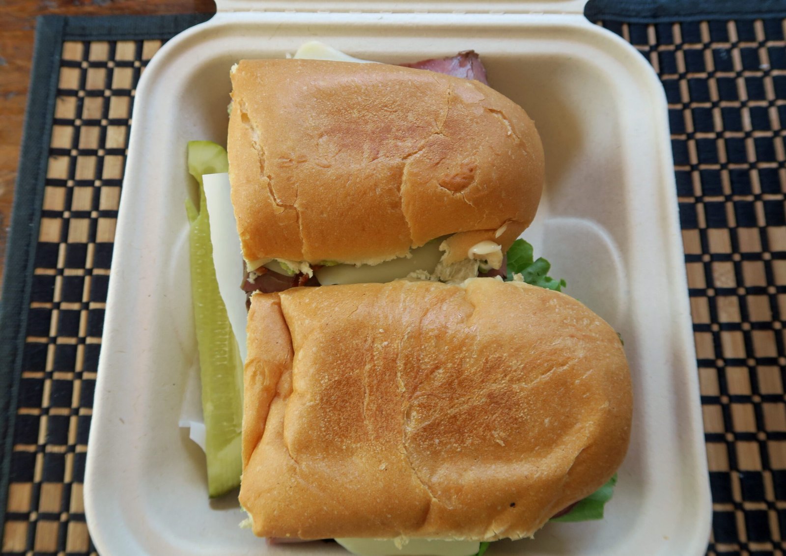 A no-frills, but satisfying Roast Beef – Avocado – mayo – mustard sandwich on a nicely toasted roll. The Swiss Cheese added a nice milkiness, the red onion, a pungent-but slightly sweet touch. Wish the tomatoes were a bit riper; but heck, at this price point, I thought I got my money's worth. Plus, the young lady was so pleasant and cheerful….we need more of that during these times, right?
