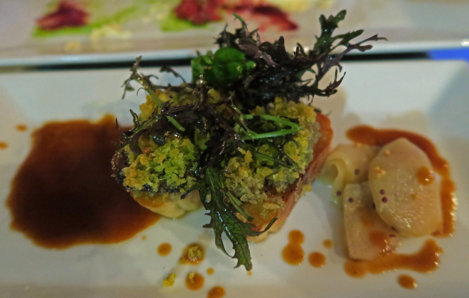 This was wonderful play of textures, from the buttery, very beefy bone marrow, the panko, perfectly toasted baguette. The port sauce wasn't overly sweet….it was closer to a veal jus, the mustard greens added a pleasant bitterness, and the pear a pleasant tart-sweetness.
