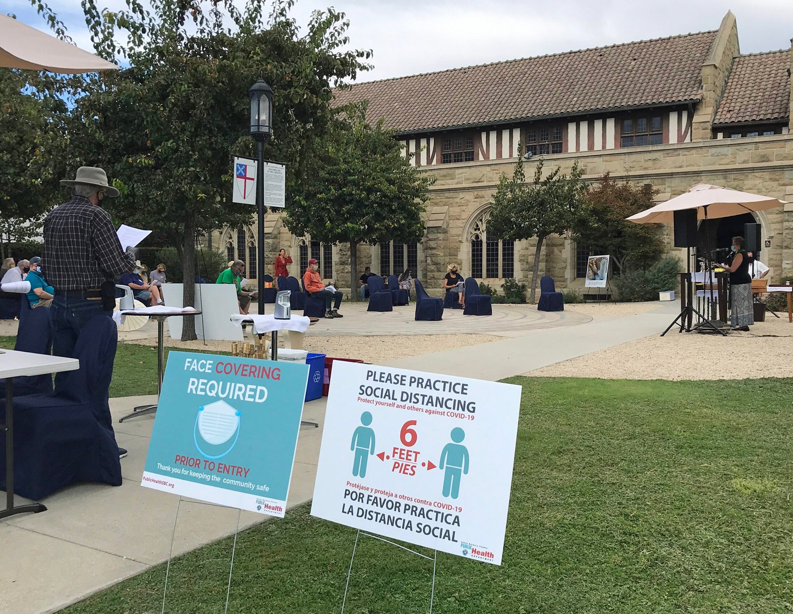 Getting to SB early meant that we had time to kill, so we headed down State Street. The Trinity Episcopal Church was having services (this was a Sunday) when we passed…..outdoors.