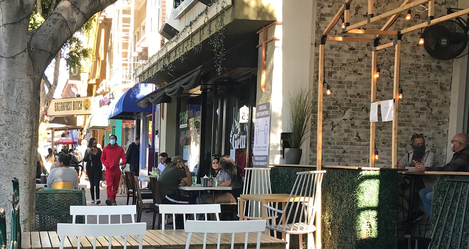 My order wasn't quite ready, so I waited outside. This was a week before the latest lockdown, so folks were eating at the outdoor tables and such.