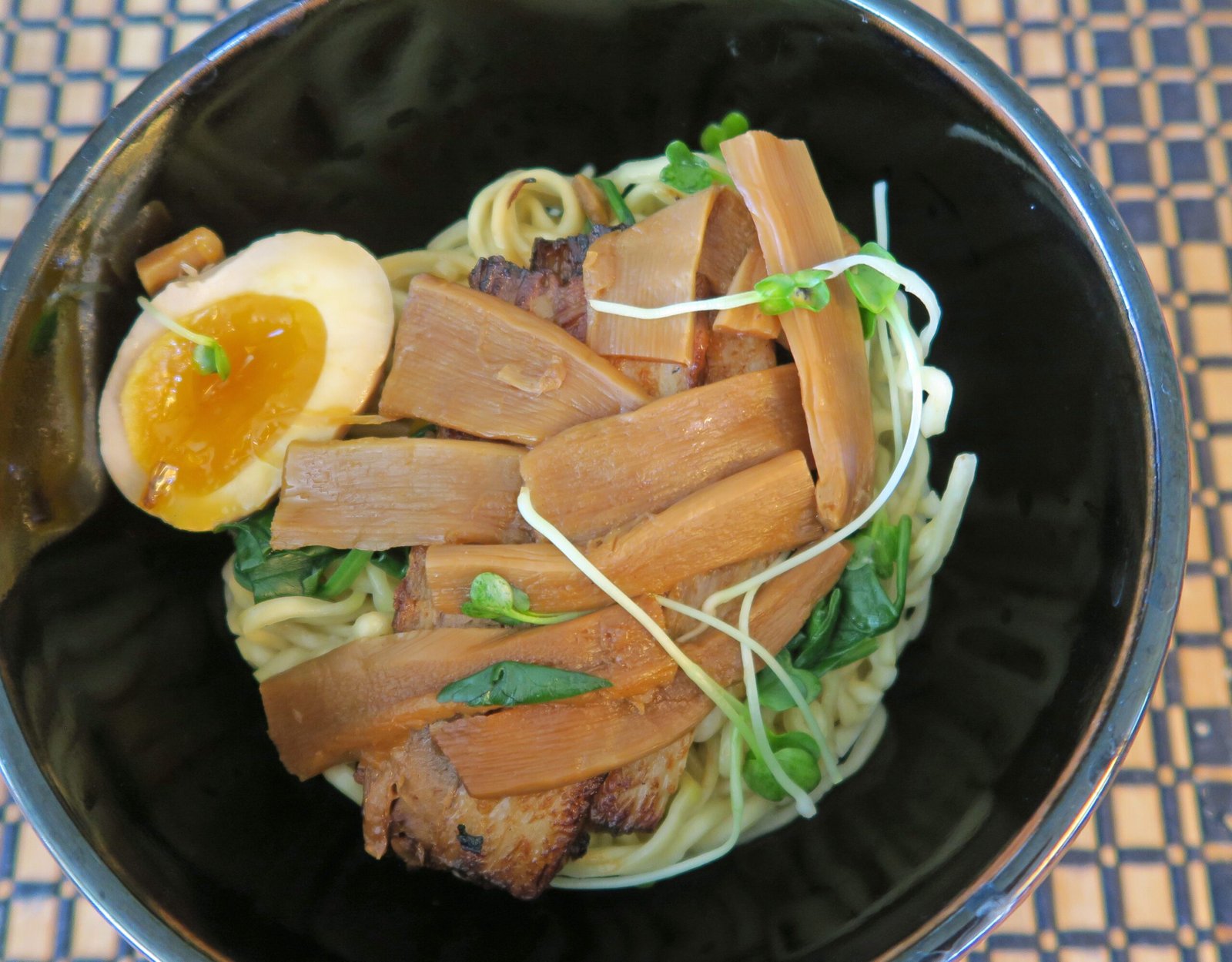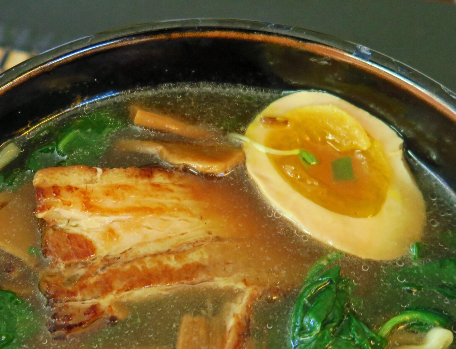 The egg was excellent, cooked perfectly. The charred chashu was wonderfully flavored and tender. The menma added a wonderful crunch and the mild bitterness of the spinach gave the whole bowl a bit more complexity.