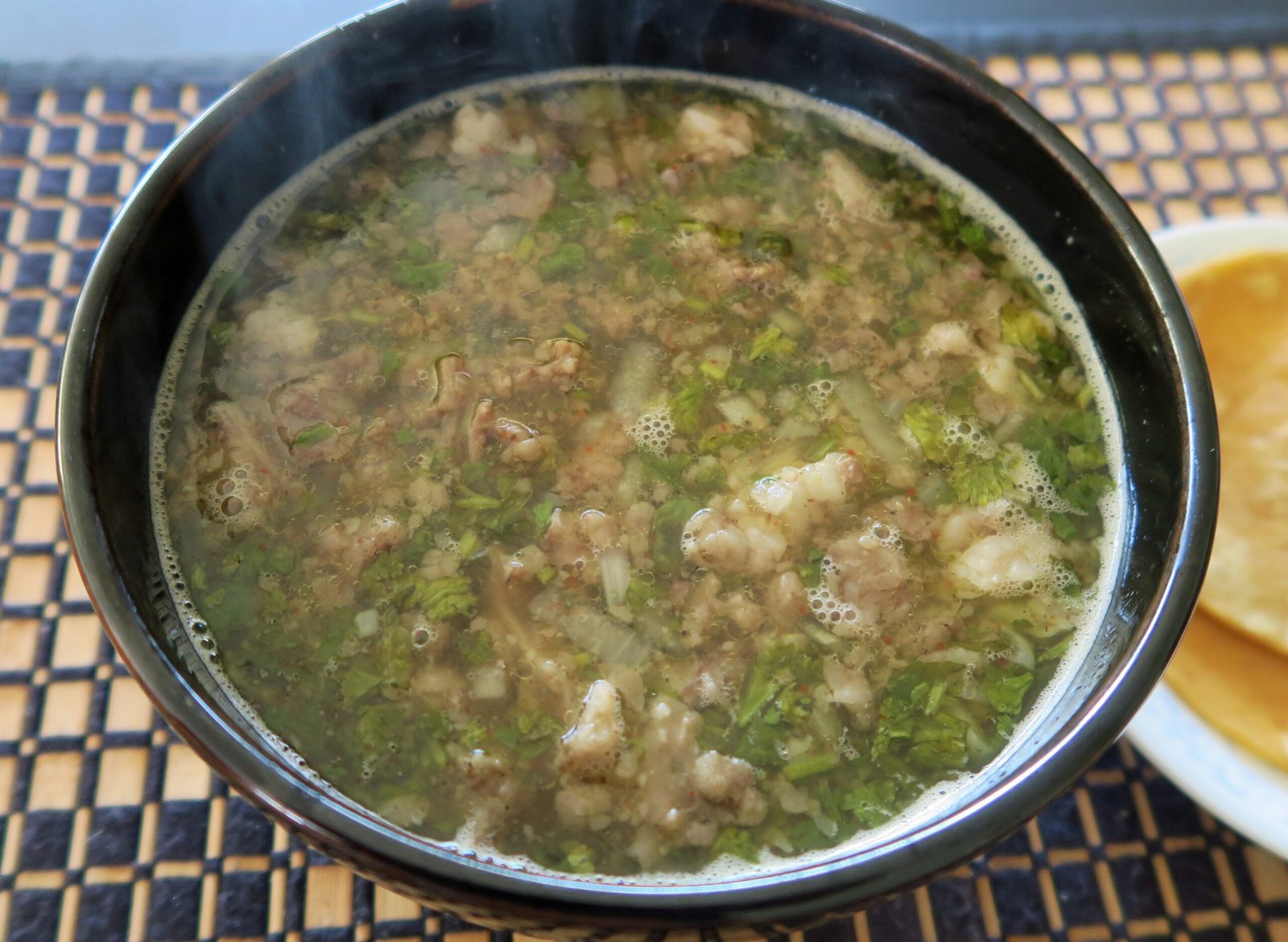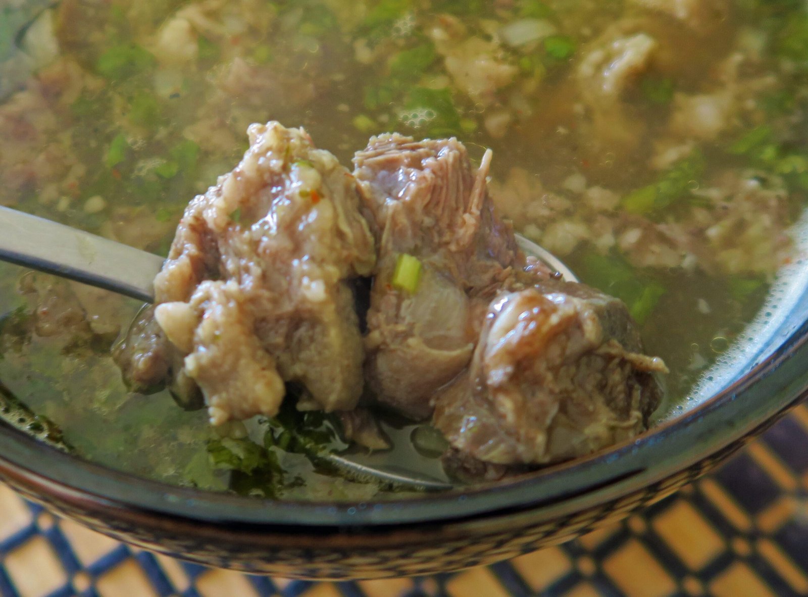 I believe I called Cabeza en su Jugo "beef-a-licious" in post from long ago and this was even more beefy. All the good bits from the cow's head were so tender; the pungency of the onion and the mild citrusy-pungency of the cilantro really added to this soup. There was a mild spice to things as well. I really didn't even need the tortillas; though they came in handy for a nice corn infused beef-a-licous bit when I plied down some of the tender pieces of wonderful bovine goodness in them.