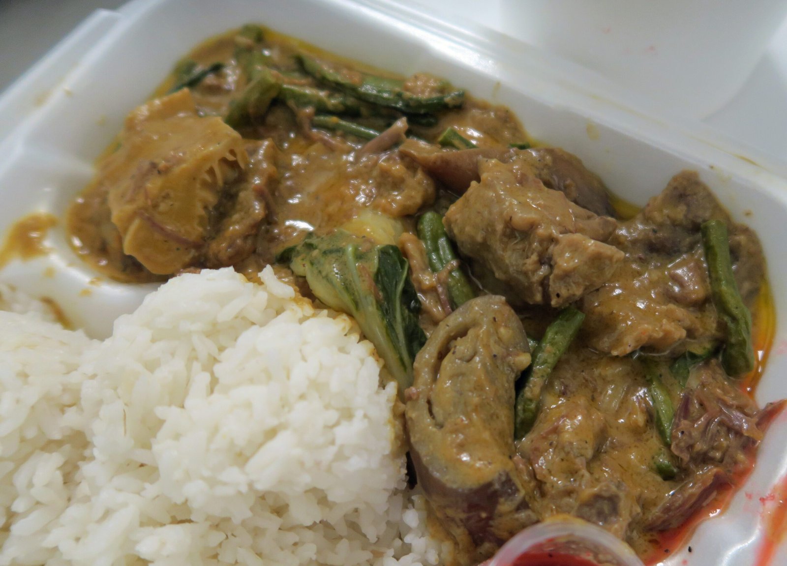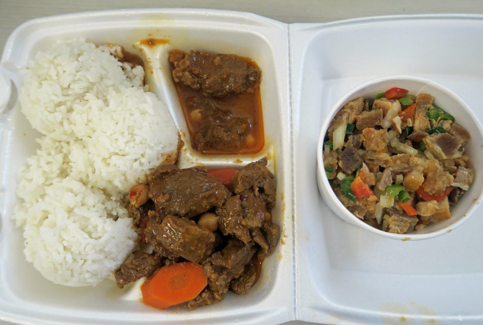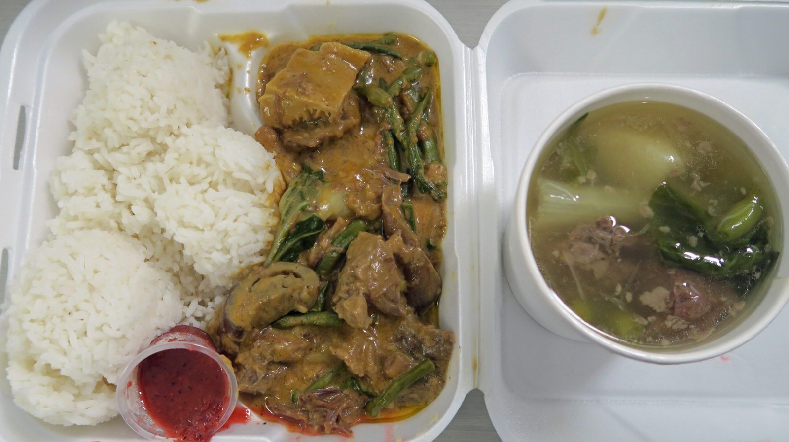 The drill for lunch is; you look at the white magnet board; whatever is ready is moved from the board on the right, to the board on the left. I had been wanting to try the sisig, but it wasn't available, so I made due with the Kare Kare and Beef Nilagang.