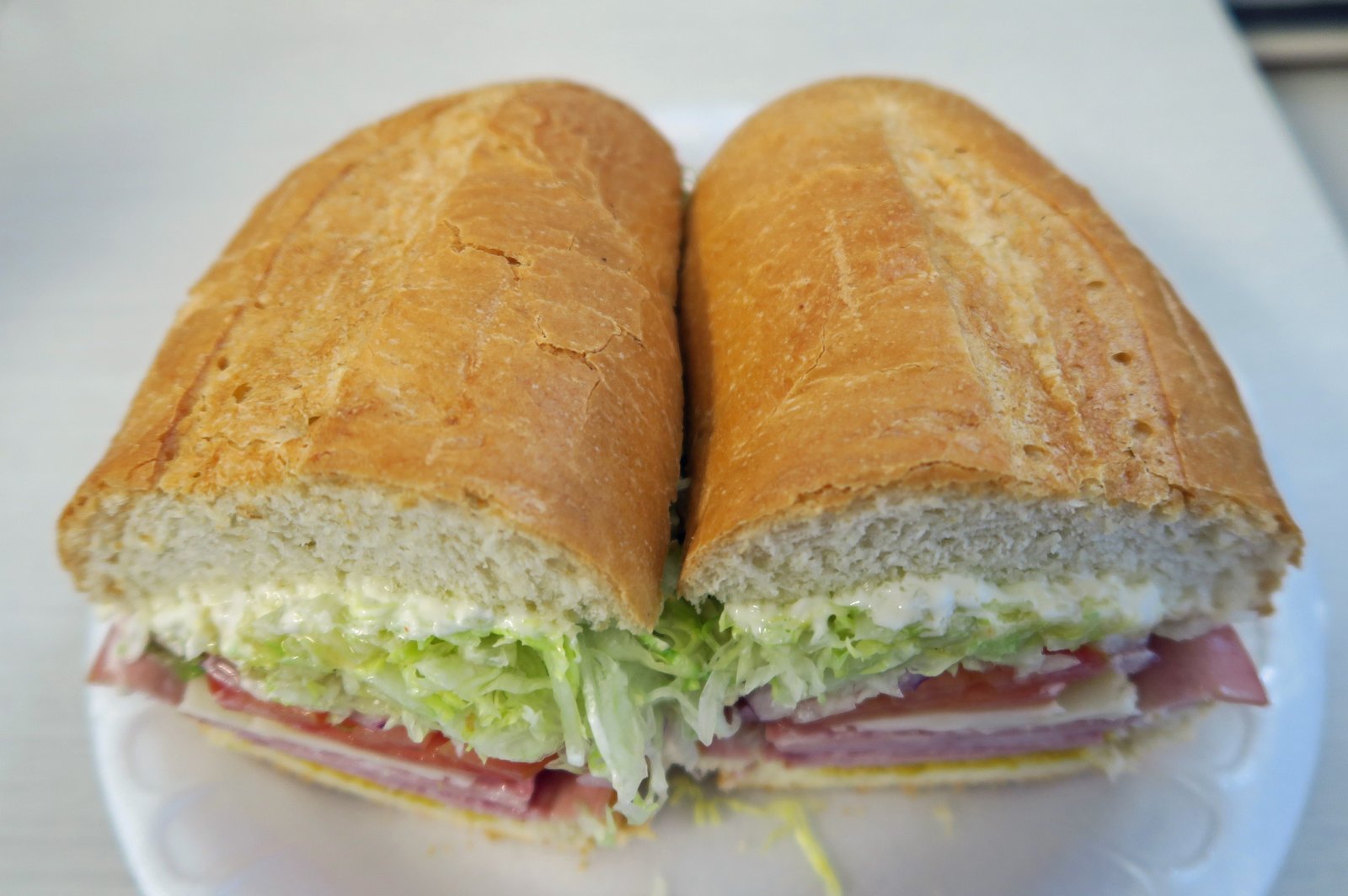 The standard issue French roll had a nice "crackle" to it, with a decent yeastiness. A simple sandwich with ham, mortadella, salami, and provolone cheese.