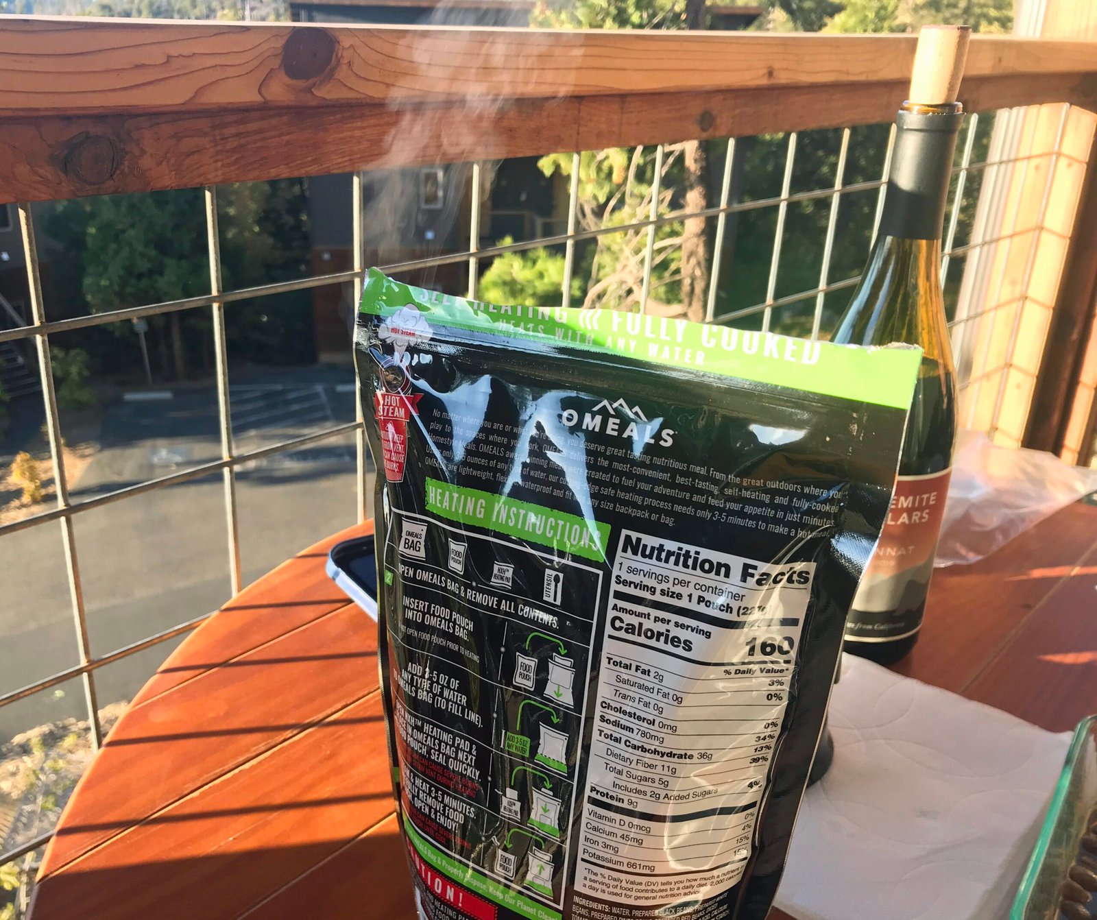 We drove back to Rush Creek and relaxed for a bit. The Missus and I just weren't up to having another meal in the restaurant and we didn't want to drive to Groveland. We went over to the General Store and picked up a bottle of wine for the Missus and a beer for me. I had done some planning and brought along a self-heating Omeal and also a portable heater-lunch box; we had brought packaged meals. I put my package of basmati rice in the Omeal bag, so it heated up along the vegetarian chili.