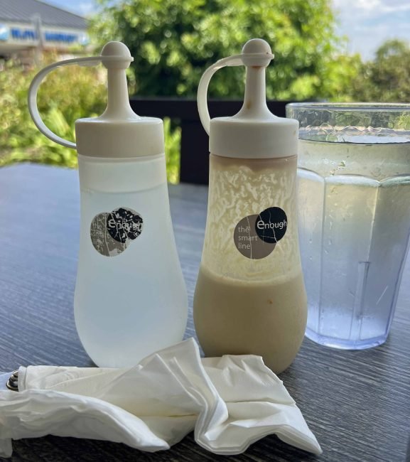 We arrived right at opening and I peeked my head into the restaurant and asked if JJ and I could sit at an outdoor table. In my experience with Woomiok, folks have always been very nice and this time was no exception. I will say, that sitting on the walkway is kinda interesting…