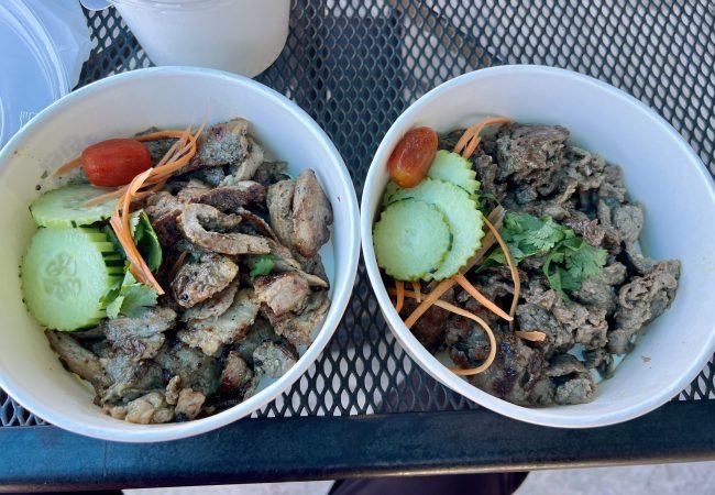 And looking over the menu….even though it listed mainly English names; it stated Spicy Larb, Grilled Marinated Beef – I’m thinking Nam Tok, sticky rice, etc…. Needless to say; I was a bit excited about the place. I mentioned it to Adam who is one of JJ’s favorite “Uncles” at BHT who lives close by in Linda Vista. And wouldn’t you know, last week he texted me and said the place had opened!