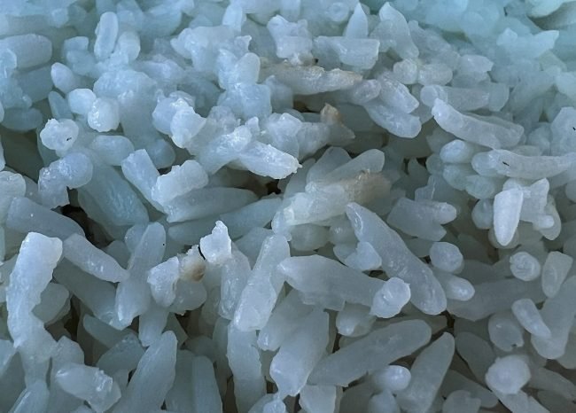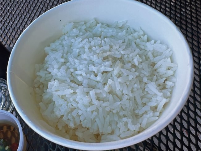 The portion of rice was generous and while a bit on the harder-chewy side was fine except for one thing I noticed right off. Take a look.