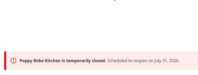 Taking the quick way home from Nijiya I passed by Poppy Boba Kitchen and noticed that the sign was gone. It was just after 11am, when they would usually be open.