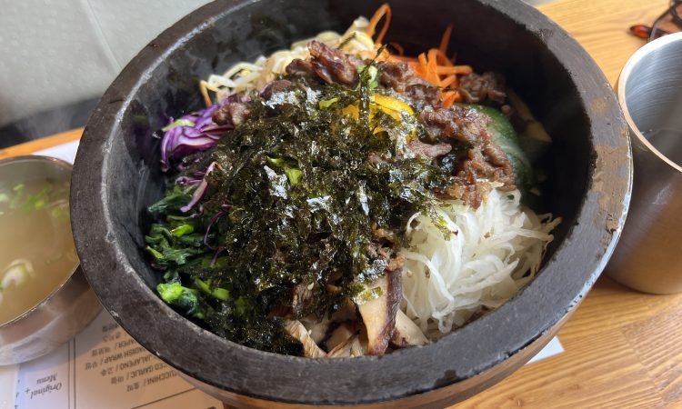 She has the soup, and then poured the juice from the baechu kimchi on top of things and gave it a good mix. Our baechu kimchi was refilled and the Missus went and poured that into the bibimbap. It developed a nice crust…..but the Missus was pretty full by this time and most of this went home.