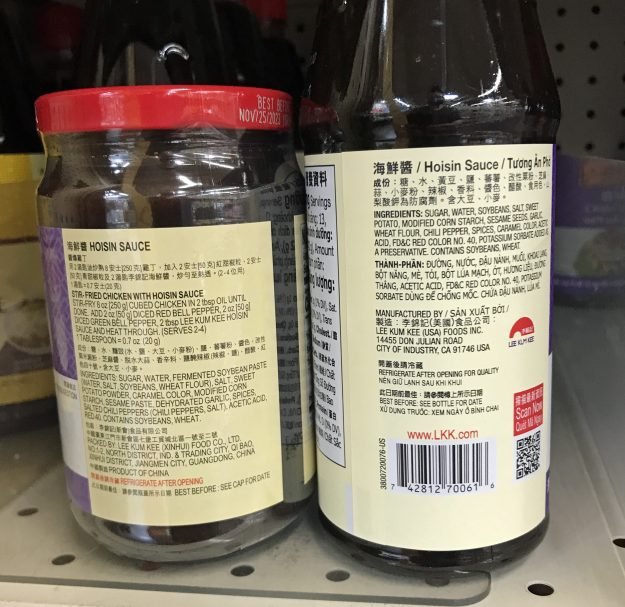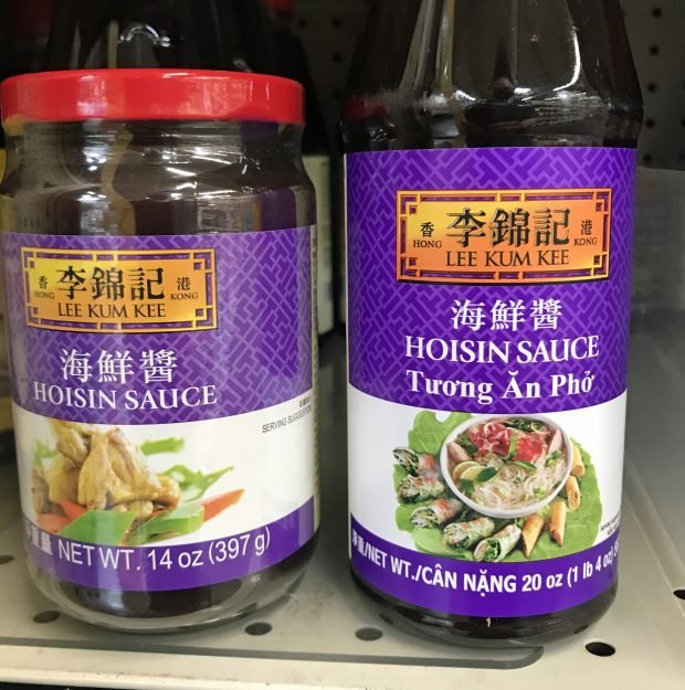Two Hoisin Sauces….made by the same company….turn the bottles around and check the ingredients.
